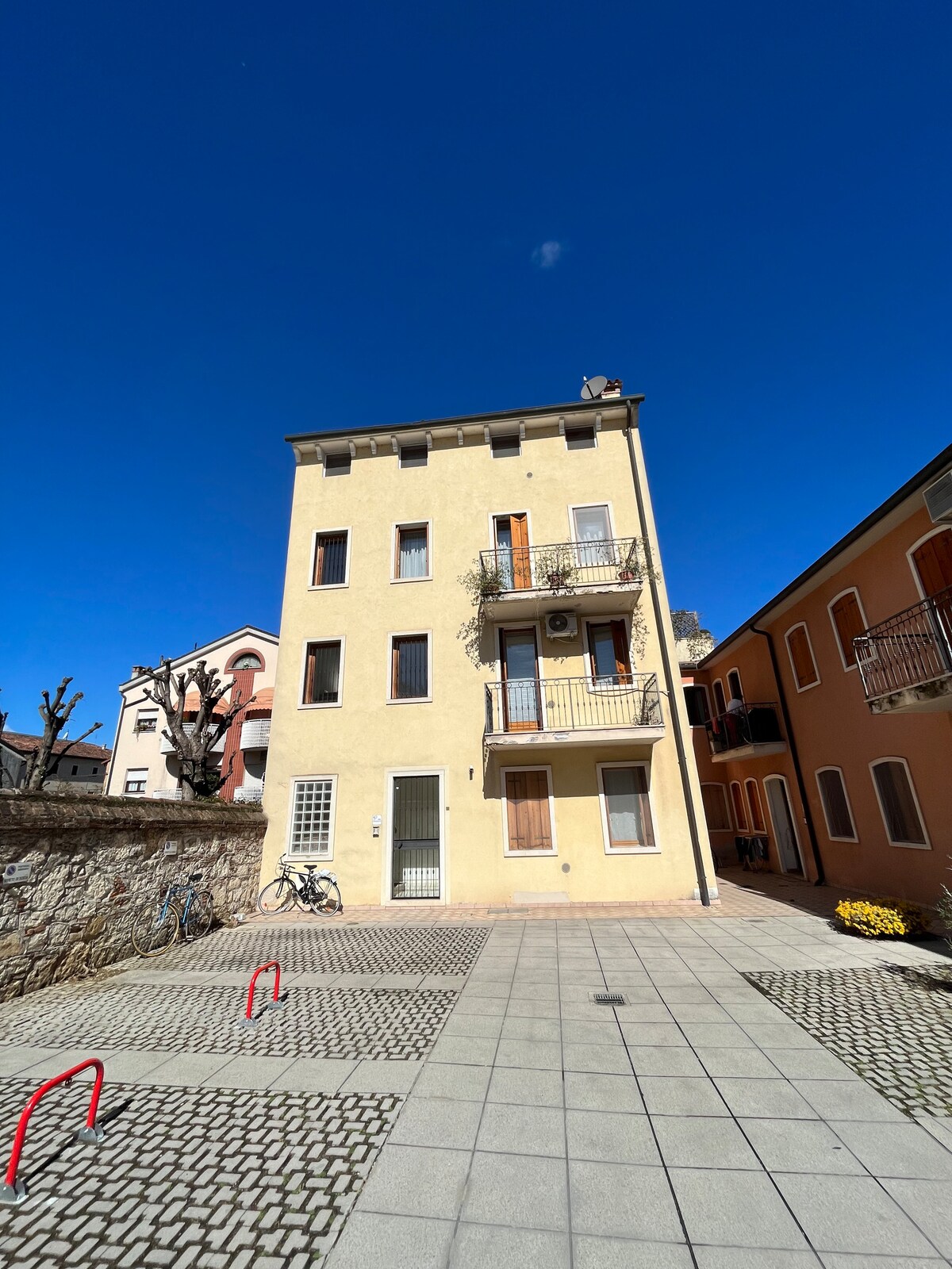Luminoso appartamento appena ristrutturato in zona pedonale nei pressi della basilica di S. Lorenzo a Vicenza, affacciato su piazzetta del Garofolino e a 10 minuti dalla stazione ferroviaria. Situato al primo piano, è composto da ampio ingresso, soggiorno - pranzo, 1 camera matrimoniale, 1 camera con letto a castello e 2 bagni di cui uno finestrato. Lo stabile è dotato di ascensore.