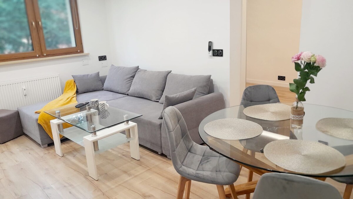 Հանգստանալու շատ տեղ և հեռավար աշխատանքի համար նախատեսված տարածք ։ Կա ինտերնետ և հեռուստացույց: Տարածքի բարձր ստանդարտը հագեցած է առօրյա կյանքը հեշտացնելու համար անհրաժեշտ բոլոր սարքերով ՝ սուրճի մեքենայից մինչև լվացքի մեքենա և ամանալվաց մեքենա ։ Բնակարանը գտնվում է տան առաջին հարկում ՝ անկախ մուտքով ։ Տան տարածքը ցանկապատված է, և հնարավոր է կայանել ձեր մեքենան ։ Սեփականությունը միացված է դեպի Oświęcim կամ քաղաքի կենտրոն/Gliwice/Katowice տանող ճանապարհին ։