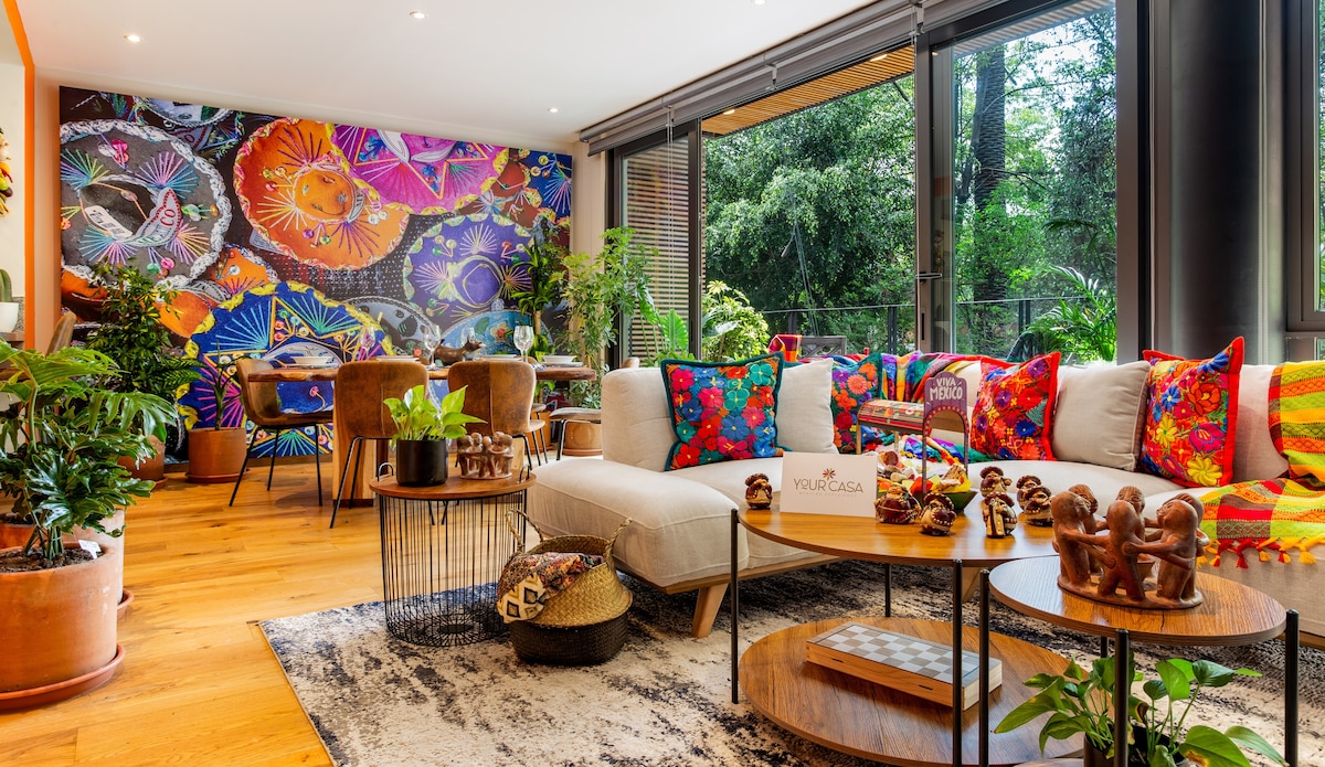This gorgeous home features a bright and open interior with colorful furnishings and stylish accents. Notice the Mexican tiles in the kitchen. Admire the expressive artwork, and lounge on the vibrant blue sofa in the living area. The home's central location provides access to many of Puebla's historic sites. Walk to the iconic Puente de Bubas, roam the Biblioteca Palafoxiana, and explore the museums all while stopping to experience the fantastic local foods and drinks.