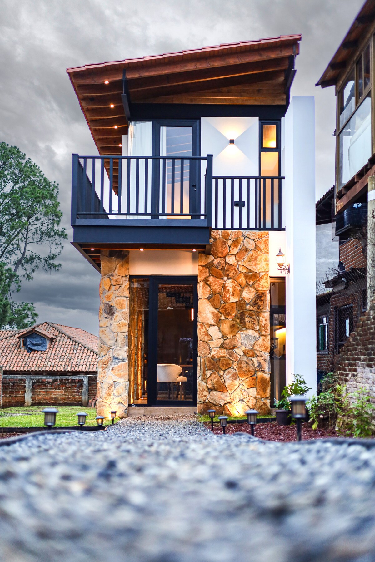 Տնակ Մազամիտլայում ՝ յուրահատուկ դիզայնով, որը դուք պետք է իմանաք ինքներդ: 1 վերևի ննջասենյակ ՝ մեծ մահճակալով, թախտ առաջին հարկում, լոգարան, որտեղից բացվում է տեսարան դեպի մասնավոր այգի, խելացի LED հեռուստացույց ՝ Netflix - ով, Disney +- ով և Starlink ինտերնետով: Մազամիտլայի մունիցիպալ հրապարակից ընդամենը 7 րոպե հեռավորության վրա է ։