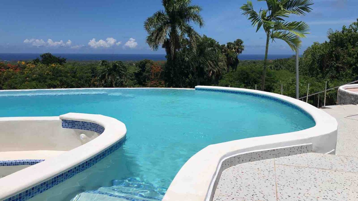 A private 3-story luxury villa located in Sosua, Puerto Plata, Dominican Republic. This stunning villa boasts 7 bedrooms and 7 bathrooms, the open concept design of the living room, dining room, and kitchen creates a seamless flow, perfect for entertaining.Step outside to a luxurious infinity pool and a soothing hot tub. Indulge in a massage in the 360 massage chair, on the second floor. The third-level provides a private terrace, bedroom and bathroom, with breathtaking views.