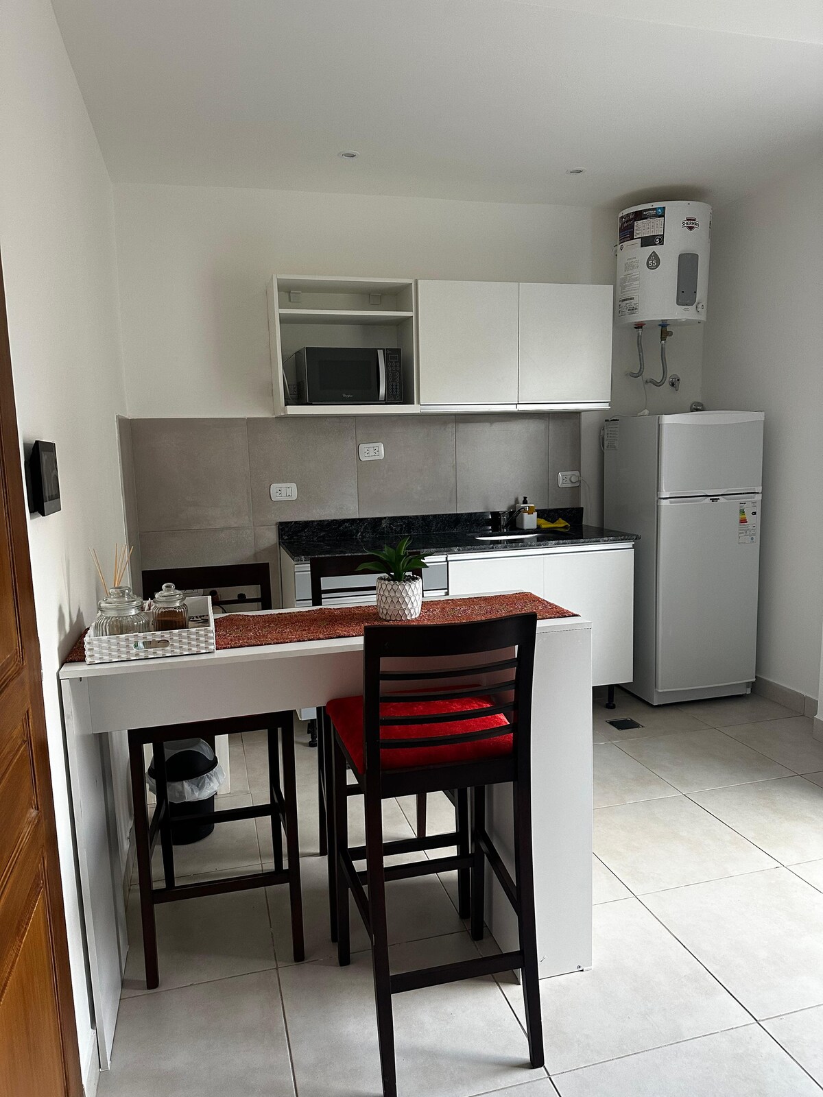 Bienvenido a este moderno monoambiente , diseñado para ofrecerte la máxima comodidad tanto si venís por negocios como por placer. Con mobiliario nuevo de alta calidad y una ubicación estratégica, este espacio es el refugio ideal en la ciudad. Equipado con una cómoda cama doble o la opción de configurar dos camas twin, adaptándonos a tus necesidades de viaje. Cocina Premium: Totalmente equipada con electrodomésticos modernos y vajilla , ideal para quienes disfrutan cocinar como en casa