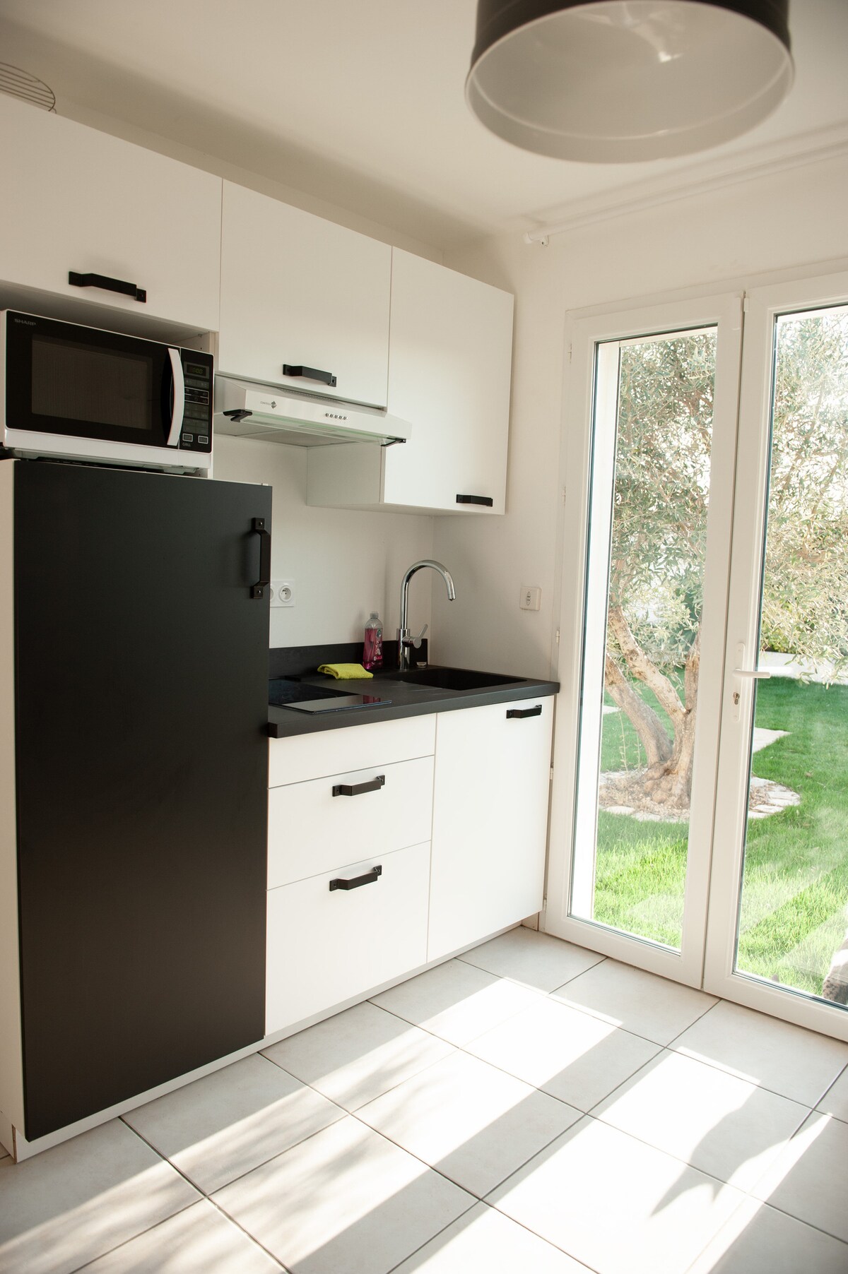 Հնարավոր է 6 հոգի լրացուցիչ 20 € ըստ պահանջի /գիշերվա համար Տեսադաշտից դուրս գտնվող կանաչ միջավայր ՝ խաղաղ և անկաշկանդ հանգստի համար ։ Բնակարան առաջին հարկում, որտեղից բացվում է տեսարան դեպի խոտ և բամբուկ ։ Պտուտակներ չկան և անկախ են ։ Գեղեցիկ հյուրասենյակ ՝ որակյալ փոխարկելի բազմոցով ։ Մահճակալ 160 - ում և 1 մահճակալ 90 - ում (ըստ պահանջի ՝ +1 մահճակալ 90 - ում), մեծ զգեստապահարան ։ խոհանոց ՝ ինդուկցիա, սառնարան/կոնգ, սուրճի մեքենա, թեյնիկ, գրիլ, որն անհրաժեշտ է խոհարարության համար ։ Ողջույնի հավաքածու ։ Տեռաս ՝ սեղան, աթոռներ, բազկաթոռներ