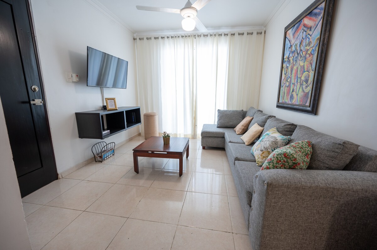 Բնակարան, որը կահավորված է Սանտյագոյում, իդեալական է հանգստի համար: Բացառիկ բնակելի համալիր, որը գտնվում է Դուարտե մայրուղու վրա, Սանտյագո դե լոս Կաբալյերոս քաղաքի մուտքի մոտ, Հոմս հիվանդանոցից ընդամենը 3 րոպե հեռավորության վրա, Cibao միջազգային օդանավակայանից 3 րոպե հեռավորության վրա, շատ մոտ են Արագ սննդի սուպերմարկետների, KFC - ի, McDonalds - ի, NYC Pizza - ի, 5 րոպե PUCMM - ից և 7 րոպե Մոնումենտից, Հոդելպա Գարդեն հյուրանոցի կողքին, առջևում հասարակական տրանսպորտի 2 գծերով: