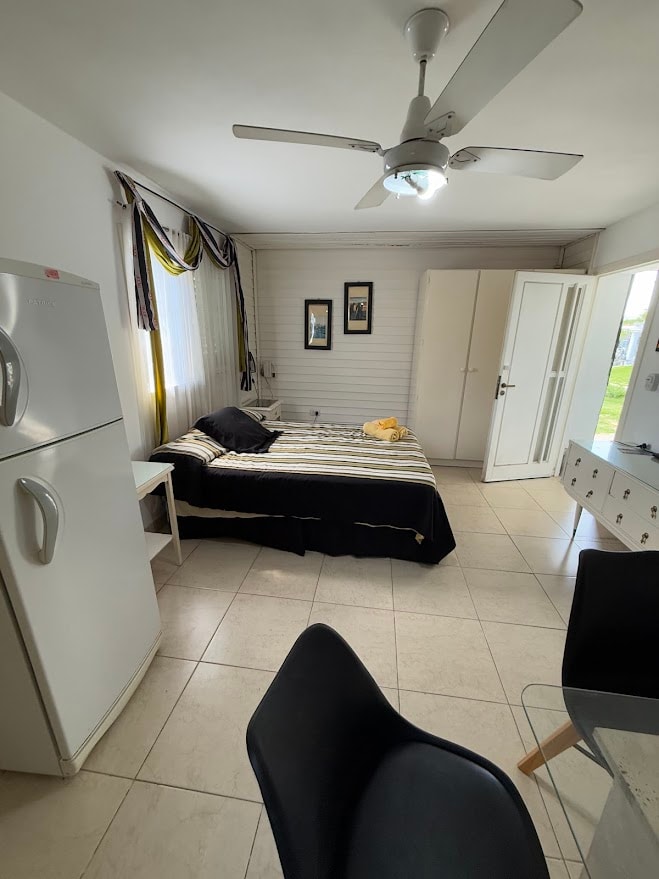 Monoambiente con cama doble y baño privado En la cocina dispone de microondas, pava electrica, licuadora, y utencillos básicos para calentar o refrigerarlos alimentos. En el exterior PILETA, SOLARIUM, quincho con mesa y reposeras. Estacionamiento dentro de la propiedad. Para quienes buscan descansar en un espacio ubicado estrategicamente para caminatas, running, ciclismo, etc Cerca de atractivos puntos turísticos