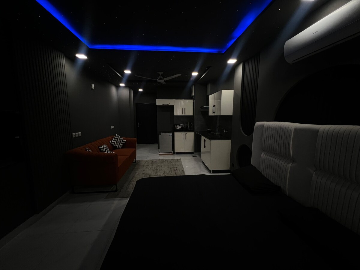 Շքեղ 1 սենյականոց բնակարան Ջոհար Թաունի բարձրակարգ Զամին Օպալ համալիրում։ Հանգստացեք աստղերի լույսով լուսավորված յուրահատուկ առաստաղի տակ, որը ստեղծում է էլեգանտ, բարձրակարգ միջավայր։ Ժամանակակից տարածքը լիովին կահավորված է հարմարավետ 183x213 սմ մահճակալով, գերարագ Wi-Fi-ով, 55 դյույմ անկյունագծով սմարթ հեռուստացույցով, օդորակիչով և լիովին կահավորված խոհանոցով։ Հյուրերը կարող են օգտվել այնպիսի հարմարություններից, ինչպիսիք են մարզասրահը, լողավազանը, տանիքի պարտեզը և շուրջօրյա անվտանգությունը։ Հարմար է զույգերի կամ միայնակ ճանապարհորդների համար, որոնք փնտրում են քաղաքում մնալու հնարավորություն՝ քաղաքի ցնցող տեսարաններով։