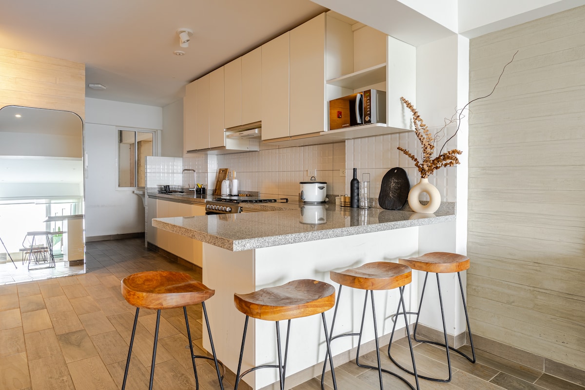 Nuestro hogar fue creado para pasar bellos momentos, no solo sentirás las mejores vibras, también tendrás todo lo que necesites para pasar días increíbles y relajantes. Puedes disfrutar en la terraza de una parrilla, frente a una hermosa vista al balneario, duermes y despiertas con el sonido mágico del mar. Estamos en el segundo piso del condominio, no contamos con ascensor, aclaramos esto para no tener inconvenientes con adultos mayores.🤗 Recuerda tratar nuestra casa como si fuera tuya.