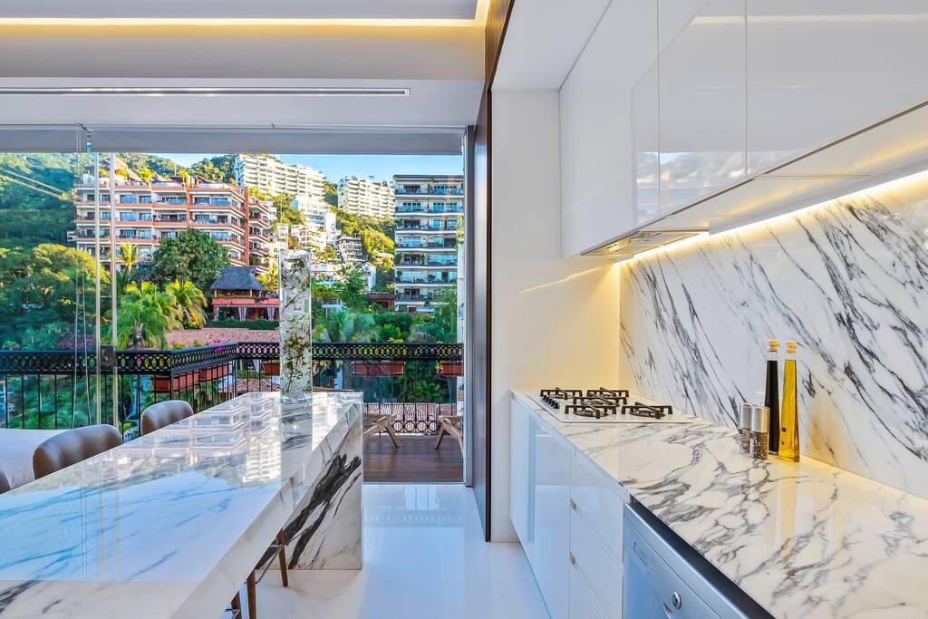 Հրաշալի 3 ննջասենյակ, 3,5 լոգասենյակ: կոնդոմինիումը գտնվում է օվկիանոսի ափին գտնվող կոնդոմինիումի 8 - րդ հարկում: Ասան Բիչ, որն ունի լավագույն տանիքը բոլոր պուերտո Վալյարտայում: Բնակարանի ամբողջ տարածքում կան մեծ սպիտակ մարմարե հատակներ ՝ շրջապատված ձայնով, բարձր արագությամբ ինտերնետով, 4 հեռուստացույցով, սպասք լվանալու հնարավորությամբ, Վիտրա և Restor_savings Hardware կահույքով, ծովախորշի և Լոս Անջելեսի լողափի հիասքանչ տեսարաններով, շենքն ունի 3 լողավազան նախասրահում, ինչպես նաև տանիքում ՝ անծայրածիր լողավազան, 2 ջակուզի, սաունա սենյակ, մերսման սենյակ և մարզադահլիճ: