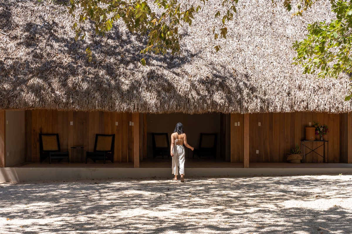 Մասնակցեք բնությանը և ուսումնասիրեք հիասքանչ փորձառություն ջունգլիներում ՝ լողափից մի քանի րոպե հեռավորության վրա ։ Հիմնական տարածքը թիպիկալ հին ռանչոն է, որտեղ կարող եք գտնել բաց խոհանոց և ապրել բնությամբ շրջապատված: Պարզապես նստեք, հանգստացեք և վայելեք ձեր պատիոյի ձայներն ու վայրի բնությունը: Տարածքում կան շատ թռչուններ, ինչպիսիք են colibrî - ը, հովազները, ձկնկուլը, նաև աղվեսը, եղջերուները և կոյոտները գիշերը: Հիմնական տարածքից առանձնացված է ննջասենյակը, որը երկաթով և ապակիով պատրաստված ժամանակակից կոնցեպտ է ։