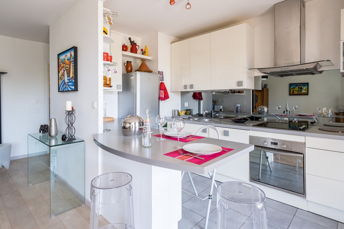 Ժամանակակից հարմարավետ 2 սենյակ ՝ պաշտպանված ավտոտնակով և գեղեցիկ պատշգամբով, որը նայում է դեպի Գարոն ։ Գտնվում է հանգիստ տարածքում և իդեալականորեն գտնվում է Թուլուզ Բլանյակի օդանավակայանից 4 կմ հեռավորության վրա, Թուլուզ քաղաքի կենտրոնից 2 կմ հեռավորության վրա ։ Մոտակա ավտոբուս, տրամվայ և ուղիղ հեծանվային արահետ դեպի կենտրոն ։ Հագեցած է բոլոր հարմարություններով ՝ լիովին կահավորված խոհանոց (ինդուկցիոն սալօջախ, միկրոալիքային վառարան, Dolce Gusto սրճեփ մեքենա), լվացքի մեքենա, երկտեղանի մահճակալ, թախտ, լոգասենյակ ՝ մուտքի ցնցուղով ։ Մուտք դեպի բնակության լողավազան ։