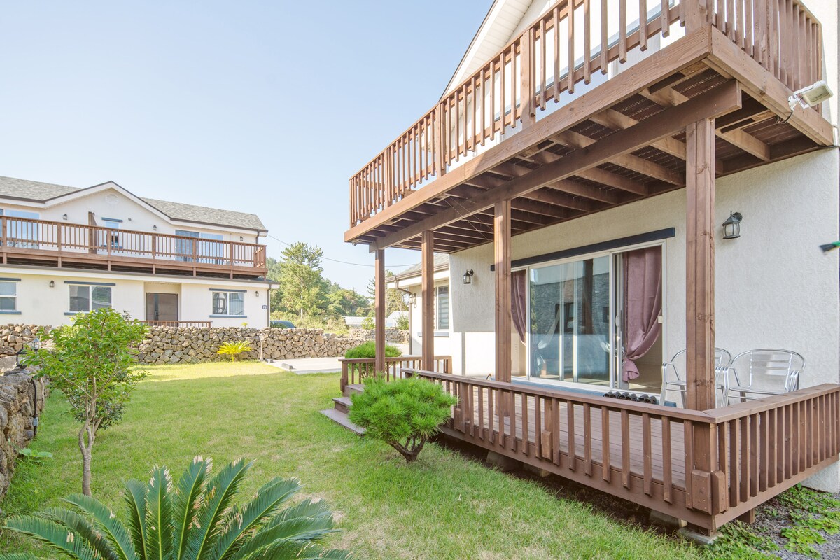 Մեր կացարանն ունի մարգագետնային բակ և բաց տախտակամած, որտեղ կարող եք ձուլվել բնության հետ: Լսեք թարմացնող թռչուններին և զգացեք մոտակա Մեյորումի և սոճու անտառի ֆիտոնցիդների մաքուր օդը: Մաքուր, մաքուր օդ մարգագետնում, զով քամիներ և թռչունների գեղեցիկ ճռճռոց... Սա ամառանոց է, որի մասին երազում են բոլորը ։ Կոկիկ և մաքուր տանը ՝ հանգիստ և մեկուսի վայրում, Դուք օգտագործում եք դուպլեքս երկհարկանի տան ամբողջ առաջին հարկը ։ Երկրորդ հարկը հյուրընկալման տարածքն է, իսկ երկրորդ հարկում կան առանձին արտաքին աստիճաններ, այնպես որ կայանատեղիից բացի այլ համընկնումային գծեր չկան ։ Քանի որ առաջին հարկում օգտագործում եք միայն մեկ թիմ, կարող եք միայնակ ապրել մասնավոր տան հետ ։ Seongsan Ilchulbong Peak, Seopjikoji, Udo, եւ Soesokkak են 20 րոպե հեռավորության վրա, եւ Seogwipo City - ն 30 րոպե հեռավորության վրա է: Մենք ամեն ինչ կանենք, որպեսզի ապահովենք ջերմ հյուրընկալություն, որպեսզի ձեր ուղևորությունը դեպի Ջեջու մնա հաճելի հիշողություն ~: Մեկնումից հետո մանրակրկիտ մաքրում, անկողնային պարագաների լվացում և ախտահանում!!!