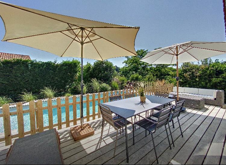 T3 *** ՀԱՐՄԱՐԱՎԵՏ ԲԱՍԿՅԱՆ ՏԱՆ ԼՈՂԱՎԱԶԱՆՈՒՄ PARTAGEE GARDEN ՄԱՍՆԱՎՈՐ ԿԱՅԱՆԱՏԵՂԻ Իդեալական է ծովի և լեռան միջև (Սուրբ Ժան դը Լյուզի լողափից 10 մմ հեռավորության վրա և Ռունի ստորոտում) Ասկենում ՝ լեռնային տեսարաններով հանգիստ բնակելի տարածքում, 2021 թվականին ամբողջությամբ վերանորոգված այս 65 մ2 T3 - ը իդեալական է ձեր տոնի համար ընտանիքների կամ ընկերների համար ։ 2 ննջասենյակով, լոգասենյակով, առանձին զուգարանակոնքով, լիովին կահավորված խոհանոցով ։ Հյուրասենյակ, որտեղից բացվում է տեսարան դեպի կտուր և լողավազան ՝ պարտեզից և մանկական խաղերից օգտվելու հնարավորությամբ ։