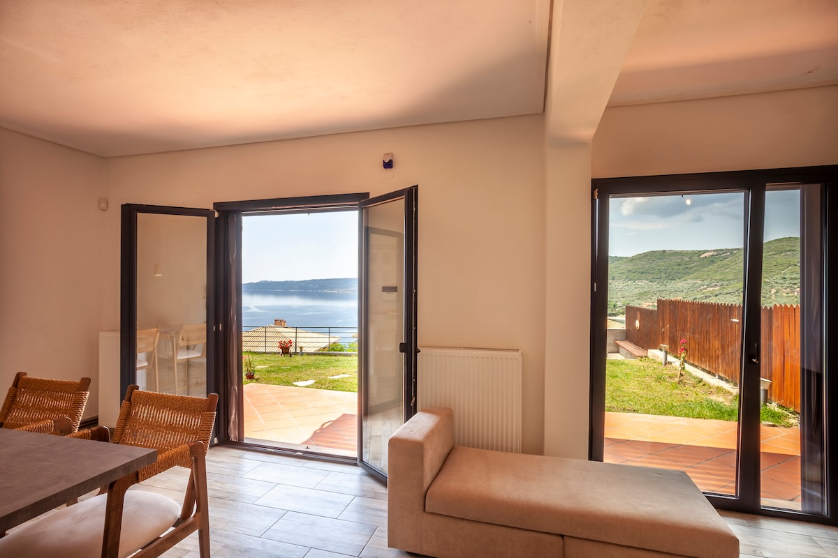 Փախեք դեպի հմայիչ Պիրգադիկիա գյուղ, որտեղ ձեզ սպասում է Bellevue – Panoramic Seaview Penthouse - ը: Խալկիդիկիի գեղատեսիլ Սիթոնիա ծովածոցում գտնվող մեր տոնական պենտհաուսը նախատեսված է գեղեցիկ տեսարաններից լիովին օգտվելու համար ՝ մեծ պատուհաններով և ապակե դռներով, որոնք բացվում են երեք պատշգամբների վրա, որտեղից բացվում են Էգեյան ծովի և Աթոսի Սուրբ լեռան համայնապատկերը: