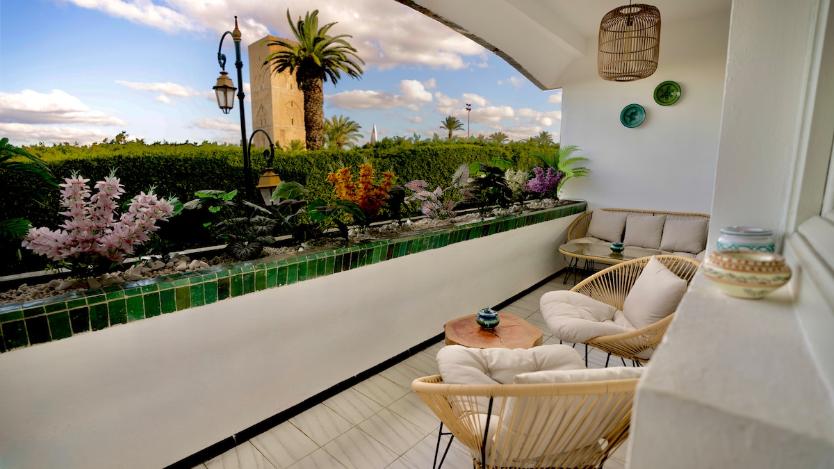 Բարի գալուստ Ռաբատի ամենապահանջված թաղամասերից մեկի սիրտ։ Այս 2 սենյականոց բնակարանը գտնվում է Հասանում 5-րդ հարկում՝ իր տանիքի տեռասով, մոտ է Հասան աշտարակին, Նուժաթ Հասան այգուն, Բուրեգրեգի ափերին, տրամվային, մեդինայից և դամբարանից 200 մ հեռավորության վրա, խանութներից և սրճարաններից, մեծ և փոքր տաքսիների կայարանից 50 մ հեռավորության վրա, այս բնակարանը ձեզ առաջարկում է նուրբ քաղաքային կյանքի փորձ՝ հանգստության, հարմարավետության և Ռաբատի բոլոր տեսարժան վայրերը ոտքով հասանելիության միջև։Կա 100 ՄԲ արագությամբ օպտիկամանրաթելային կապ։