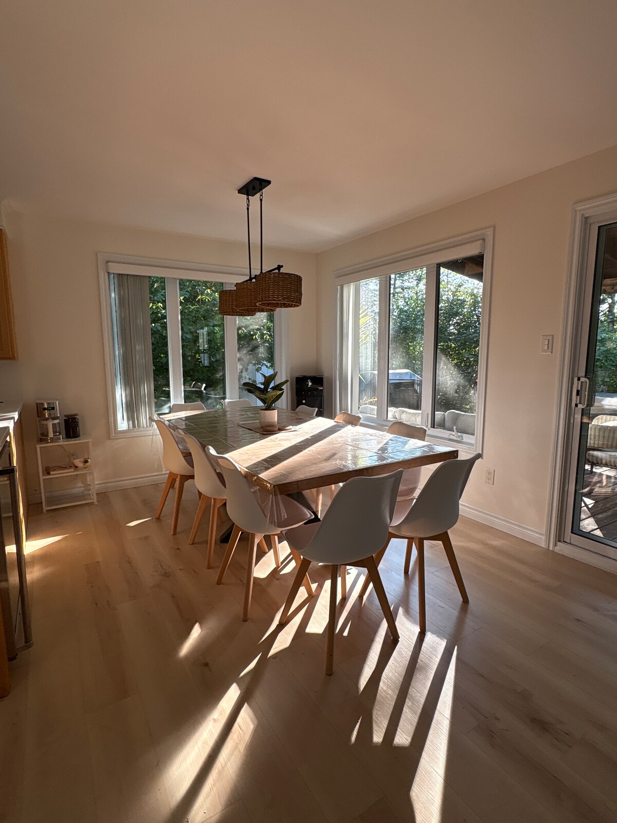 #CITQ 304712 exp. 30/04/2026 Պայծառ կացարան իմ տան կիսանկուղում ՝ ամբողջական խոհանոցով, որը շատ լավ կահավորված է ։ Առանձին և ինքնամփոփ մուտք ՝ ձեր առանձնության համար ։ Կենտրոնական կղզի ։ Հյուրասենյակ ՝ աշխատանքային տարածքով, 4K հեռուստացույց, Netflix, անսահմանափակ Wi - Fi ։ Ընդարձակ գլխավոր ննջասենյակ ՝ հեռուստացույցով, երկտեղանի մահճակալով և մեկտեղանի մահճակալով ։ Երկրորդ միացված ննջասենյակ ՝ Սմարթ հեռուստացույցով, երկտեղանի մահճակալով և մեկտեղանի մահճակալով ։ Տան ձախ կողմում կա ձեր առանձին բացօթյա տարածքը ՝ խորովածով, պիկնիկի սեղանով