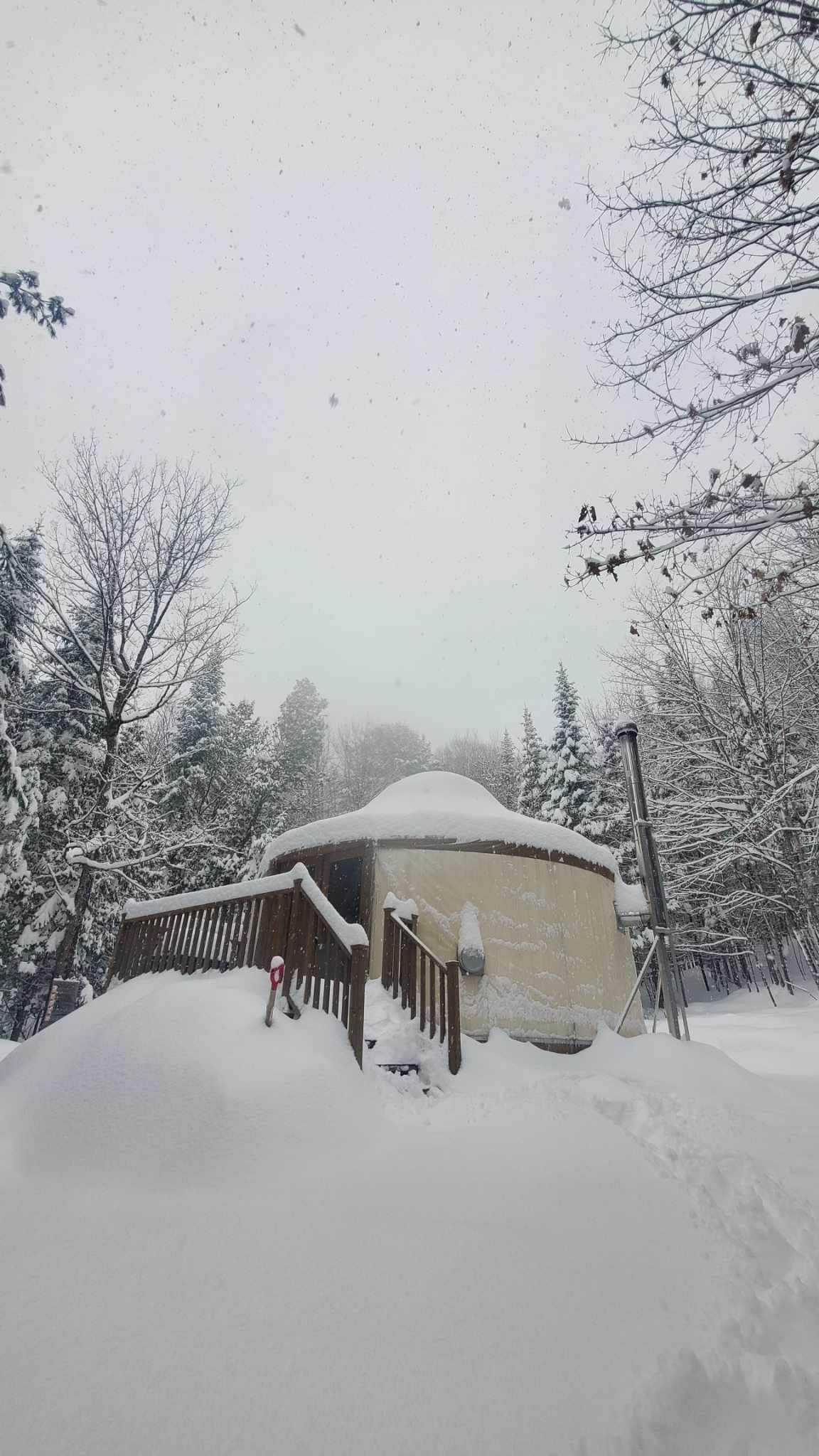 5 րոպե քայլելուց հետո մեր յուրտերն առաջարկում են Saguenay fjord - ի ամենագեղեցիկ տեսարանը, շատ շքեղ, դրանք հագեցած են ջեռոցով և պրոպանային սառնարանով, արևային էներգիայով, տաք ջրով 22 լիտր ժամում և ցնցուղով( ամռանը ) և ձմռանը տրամադրվում է ջուր: Տրամադրվում են անկողնային պարագաներ, ինչպես նաև խոհարարության համար նախատեսված բոլոր սարքավորումները: Յուրտը հագեցած է բաքի զուգարանակոնքով, դրսում կգտնեք նաև չոր փոսային պահարաններ ։ Տրամադրվում է փայտի ջեռուցում, փայտի ջեռուցում ։ Իսկական շքեղ քեմփինգ: