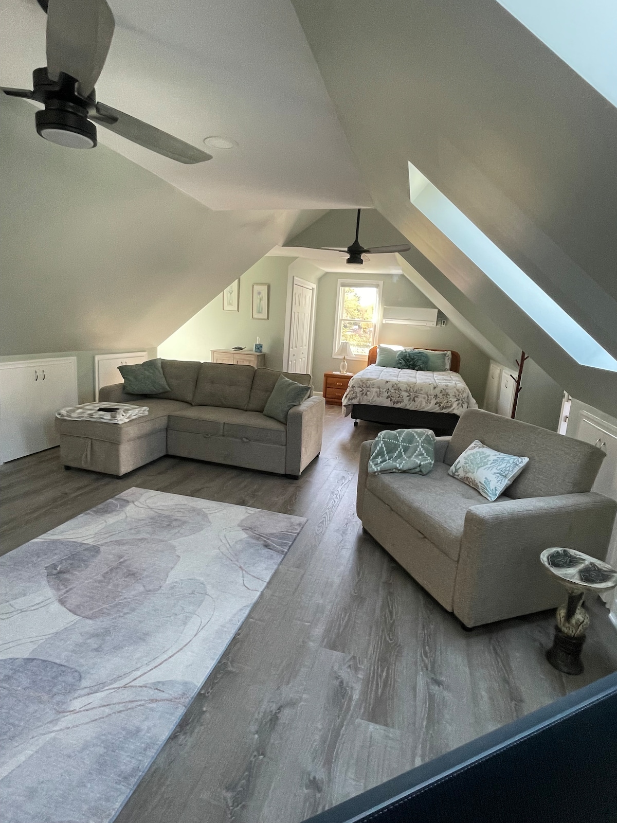 Մենք ողջունում ենք ձեզ հանգստանալ երկուսի համար նախատեսված այս հարմարավետ տարածքում ՝ մեծ մահճակալով և առանձին լոգասենյակով ։ Մենք սիրում ենք փոքրիկ մարդկանց և ունենք տուփ ու խաղ ։ ☺️Վայելեք գերարագ ինտերնետը և 50 դյույմ սմարթ հեռուստացույցը ։ Խոհանոցիկը հագեցած է մինի սառնարանով, միկրոալիքային վառարանով, Keurig - ով և երկուսի համար նախատեսված սեղանով ։ Կոդավորված մուտքը կբացվի ձեր մասնավոր տարածքում, որը կցված է մեր տանը, բայց առանձնացված է կողպված դռնով ։ Մենք սիրում ենք առաջարկել վաղ ժամանում և ուշ մեկնում, ինչպես թույլ է տալիս մեր օրացույցը: