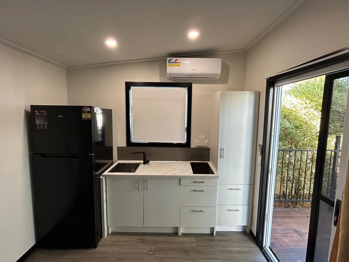 Հանգստացեք ցնցող Տենտերֆիլդի տարածաշրջանում և մնացեք մեր զբոսայգում, որը գտնվում է քաղաքի կենտրոնից ընդամենը մի քանի րոպեի հեռավորության վրա։ Անկախ այն բանից, թե դուք փնտրում եք կարճատև կանգառ, թե ավելի երկար այց, մենք առաջարկում ենք կատարյալ կացարան՝ տարածաշրջանից վայելելու համար։ Այս յուրօրինակ փայտե տնակը ունի queen-size չափսի և մեկտեղանի մահճակալներ, խոհանոցիկ, նախաճաշի սեղան և հեռուստացույց։ Կատարյալ է զուգընկերների, միայնակ ճանապարհորդողների, աշխատակիցների կամ ընտանիքի/ընկերների համար։ ԽՆԴՐՈՒՄ ԵՆՔ ՆՇԵԼ, որ լոգասենյակ ՉԿԱ, սակայն հարմարությունների բլոկը գտնվում է անմիջապես տնակի դիմաց։
