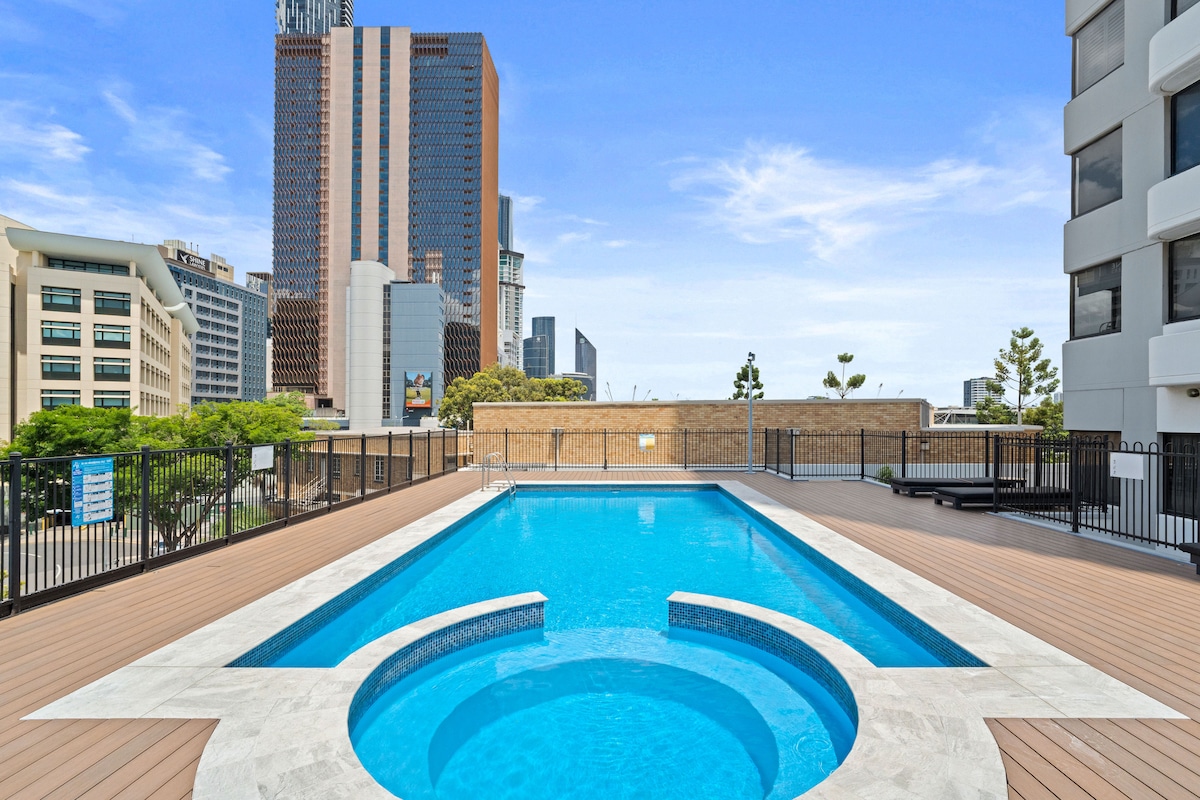 Մեր ապշեցուցիչ գետնահյուղի և բուսաբանական այգու տեսարանով մեկ սենյականոց բնակարանն իդեալական է կարճաժամկետ և երկարաժամկետ այցերի համար: Գտնվում է ներքին CBD - ում, Brisbane - ի SkyTower - ի շենքը մոտ է ամենուր: Բնակարանի առանձնահատկությունները ներառում են ՝ ընդարձակ ննջասենյակ ՝ King size մահճակալով և զգեստապահարանով ։ Տրամադրվում են թարմ սրբիչներ և սպիտակեղեն ։ - Սոֆայի մահճակալ հյուրասենյակում - Կենտրոնական օդորակիչ - Գազօջախի վերևի մասում ՝ ամբողջական շեֆ - խոհանոցով - Լվացքատան տարածքից հեռու - Լվացքի մեքենա և չորանոց - Coffee մեքենա - Smart TV - Free WIFI