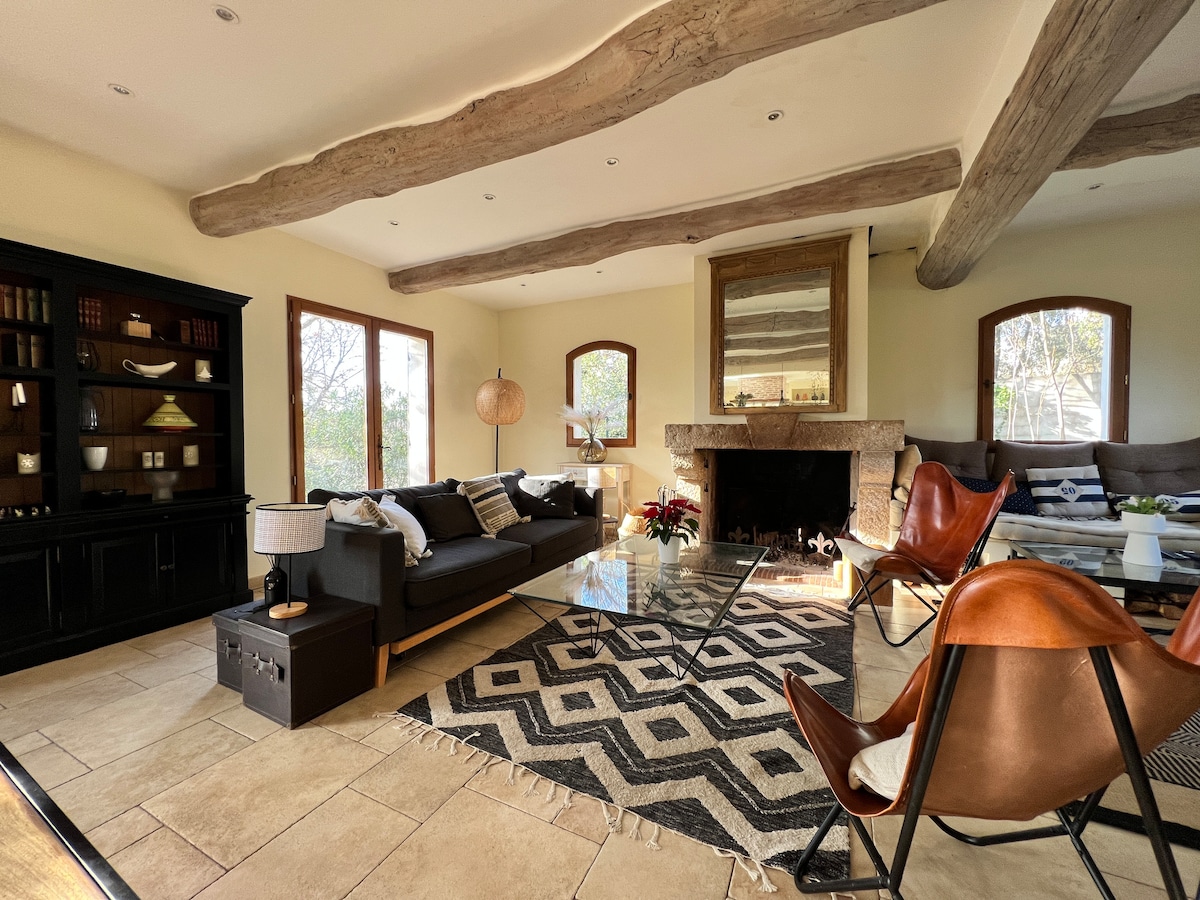 Անսովոր տուն անտառում ։ Կանաչ Պրովանսում, որը բույն է դրել անտառների, ձիթապտղի ծառերի, մացառուտների և խաղողի այգիների միջև ։ Ձմռանը փայտի կրակ, լողավազան, փեթակի դաշտ, խավ, մեդիտացիա, յոգա կամ անտառում պագոդայի տակ ընթերցանություն: Բնության մեջ ՝ բացառիկ միջավայրում: Հարմարավետ և օդորակիչով թափված, հանգիստ ՝ լիցքաթափվելու և անջատվելու համար: Ավտոկանգառ: Ցանկապատ մեր կենդանիների ընկերների համար: Իդեալական տոն ՝ գեղեցիկ վայրեր այցելելու համար: