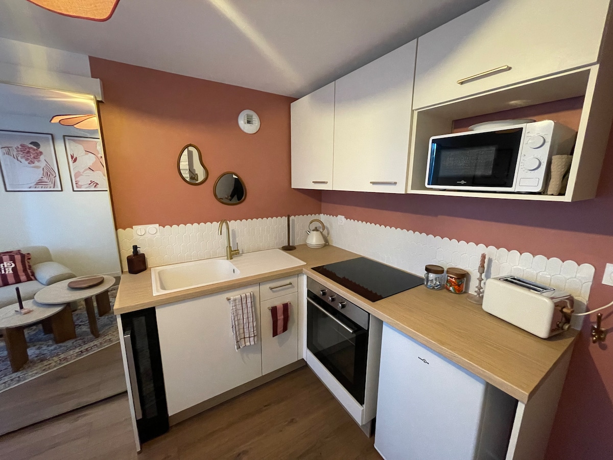 Գտնվում է Լավալ քաղաքի կենտրոնում, երկաթուղային կայարանից 15 րոպե հեռավորության վրա և քաղաքի կենտրոնի ռեստորաններին և բարերին մոտ, սիրահարներին նվիրված այս զգայական հավաքակազմը սպասում է ձեզ անմոռանալի հանգստի ՝ ամբողջական հայեցողությամբ: 40 մ² մակերեսով այս մեկ մակարդակի ստուդիան լիովին կահավորված է, հեռուստացույց, ինտերնետ, Wi - Fi, խոհանոց ՝ լվացարանով, ջեռոցով, միկրոալիքային վառարանով, գազօջախով, սառնարանով և խոհանոցային պարագաներով ՝ ինքնուրույն պատրաստելու համար ։ Հանգստացեք ձեր առանձին 2 տեղանոց ջակուզիում ՝ բոլոր տարբերակներով ։