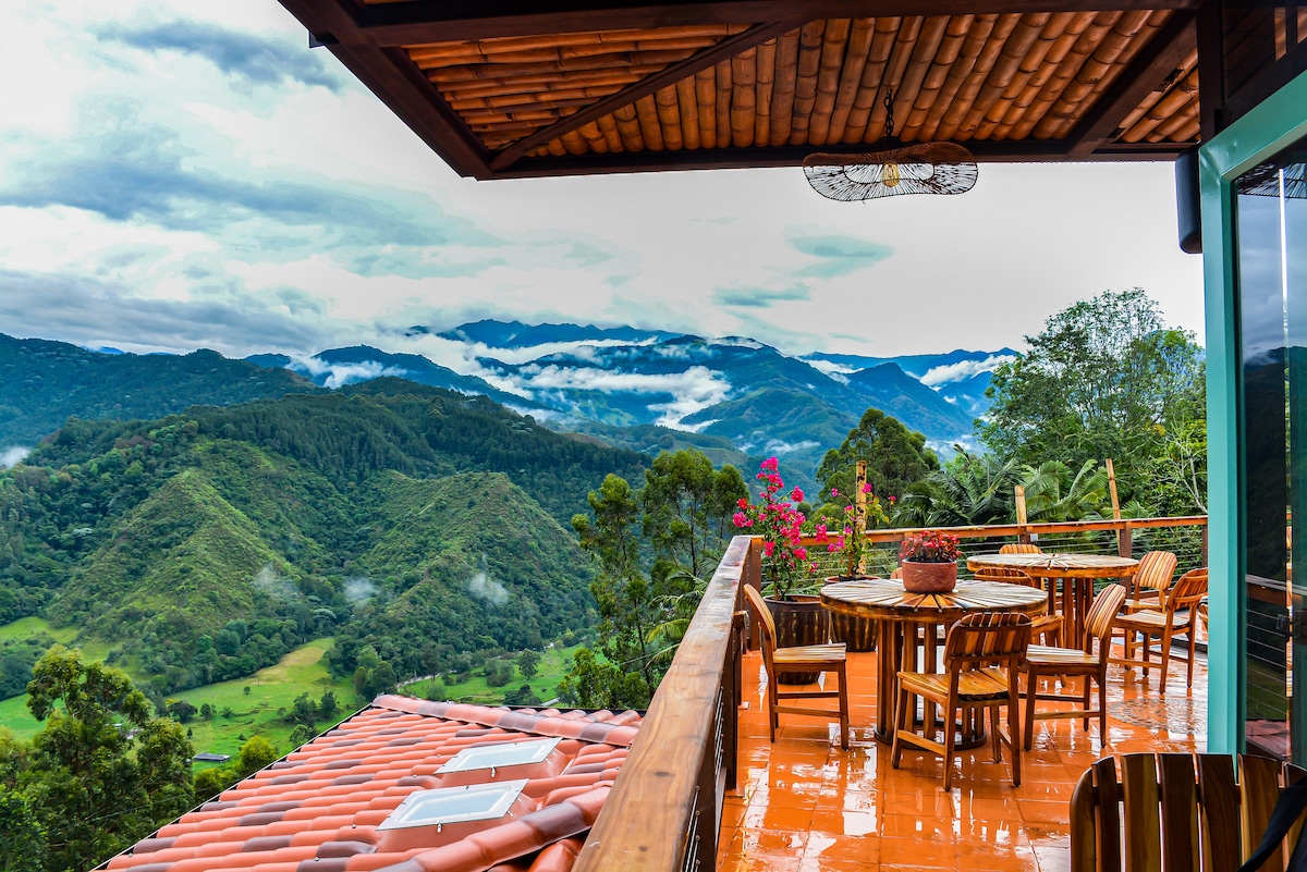 Գաղութային տուն, որը մեծ անակնկալ է մատուցում իր դիզայներներով լի ժամանակակից միջավայրերի համար, որը գտնվում է Քվինդիո բլրի կամ Լոս Անդեսի դստեր լուսավորված բլրի վրա, ինչպես հայտնի է Ֆիլանդիա - Կվինդիոն ։ Վայր, որտեղ կարելի է շեղվել և կտրվել քաղաքից ։ Հյուրանոց, ճարտարապետություն, դիզայն, մշակույթ, մշակույթ, հանգստի կենտրոն, հանգստի կենտրոն, թուրքական, թուրքական, ջակուզի, խորովածի տարածք, արտաքին պատիո: Կիսվեք մեզ հետ Կոլումբիայի ամենակախարդական գյուղերից մեկում յուրահատուկ փորձառություն ունենալու հնարավորությամբ ։