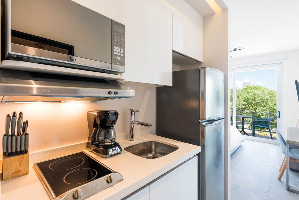 Պլայա դել Կարմենի լավագույն վայրով գեղեցիկ ստուդիա, դուք կարող եք 5 րոպեից քիչ քայլել դեպի լողափ Պլայա դել Կարմենի ամենագեղեցիկ լողափերից մեկում: Բնակարանից բացվում է բնություն և հիասքանչ տեսարաններ դեպի օվկիանոս ՝ տանիքի վերին լողավազանից ։ Նաև կարող եք մարզվել տանիքի գագաթին գտնվող մարզասրահում ՝ կարիբյան ծովի հիասքանչ տեսարանով: Պանորամային լողավազանը հիանալի է արևայրուք ընդունելու համար ։ Իդեալական է այն զույգերի կամ ընկերների համար, որոնց անհրաժեշտ է այդ հանգիստը ՝ cuna y silla de bebe esta sujeto a disponibilidad ։