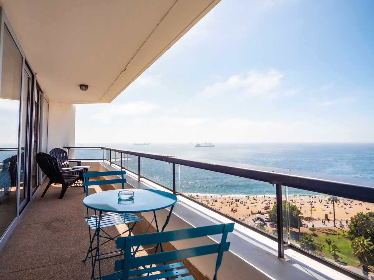 Հանգստացեք, դուք գտնվում եք Վիանիա դե Մար քաղաքի լավագույն վայրում, որտեղից բացվում է տպավորիչ տեսարան դեպի Խաղաղ օվկիանոս, Վիյա դել Մար և Վալպարաիսո ծովածոց ։ Դեպարտամենտը բառացիորեն գտնվում է ծովափին և մոտ է բազմաթիվ զբոսաշրջային վայրերի, ինչպիսիք են Վերգարա պիրը, թանգարանները կամ Վայելեք խաղատունը: Մարինա Արաուկո մոլը, սուպերմարկետները, դեղատները և տարածաշրջանի լավագույն ռեստորանները ընդամենը մի քանի րոպե հեռավորության վրա են: Նաև ունենք անվճար ստորգետնյա կայանատեղի մեկ տրանսպորտային միջոցի համար ։