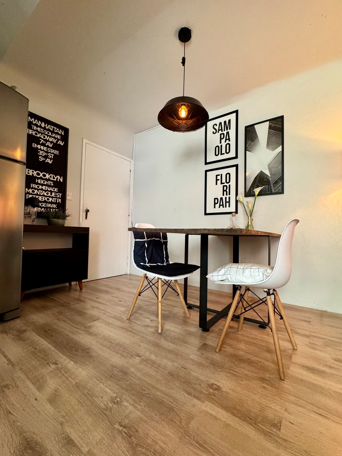 O apto contempla quarto, sala e cozinha integrados e um banheiro privativo. Foi projetado e decorado para os hóspedes da plataforma, com conforto e praticidade. Tem Cama de casal. Roupeiro. Smart TV Sofá. Mesa para refeição e duas cadeiras. Frigobar. Pia/cozinha. Fogão de indução 1 boca. Microondas. Utensílios básicos para cozinhar. Wi-fi. Ventilador. O apto é térreo. O prédio não tem garagem, os moradores deixam os carros na rua pública, em frente ao prédio.