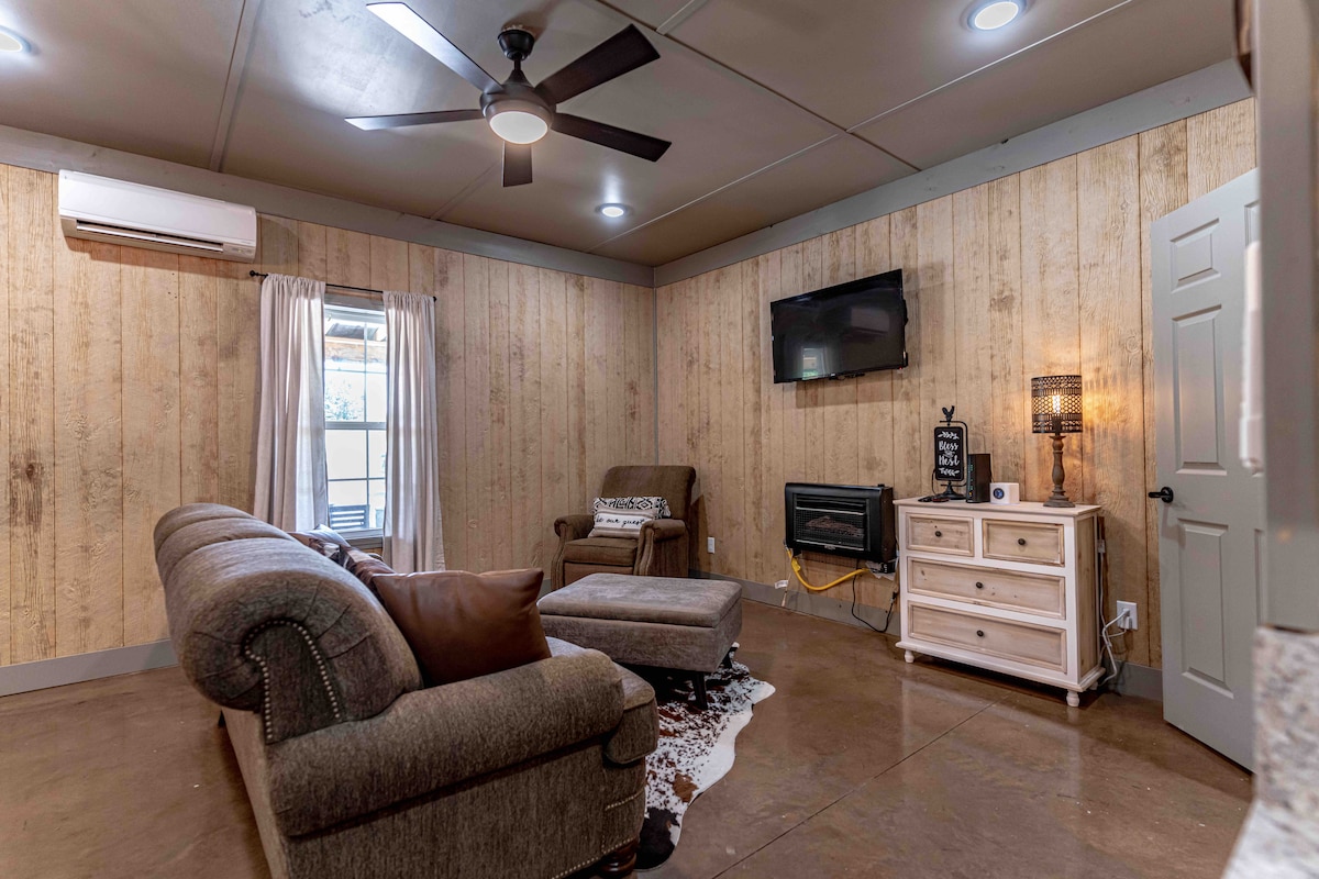 Գյուղական 1 ննջասենյակով հարկաբաժին 6 ակր տարածքի վրա: Գեղեցիկ առու ՝ ձեր դռնից մի քանի հարյուր յարդ հեռավորության վրա ՝ հաճելի մայրամուտներով ։ Կամարակապ հյուրասենյակ, երկակի reclining բազմոց, 50 դյույմ ROKU TV & dinette. Խոհանոցիկ ՝ ամբողջական չափսի սառնարանով, միկրոալիքային վառարանով և Keurig սրճեփով ։ King size bed, հարմարավետ էլեկտրական բուխարի, 32 դյույմանոց ROKU հեռուստացույց և պահարան ՝ լվացքի մեքենայով/չորանոցով: Հիմքերը տրամադրվում են մեկ այլ վարձակալի հետ ։ FT Knox-6.2 մղոն Էլիզաբեթթաուն սպորտային պարկ -15 մղոն Եկեղեցին Hill Downs -36 մղոն Սահմանային կաղնու թորոց -7 մղոն