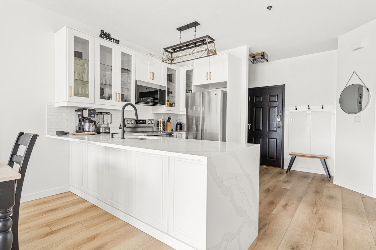 Լիովին վերանորոգված 2 ննջասենյակով կոնդոմինիում ՝ տեսարանով ։
