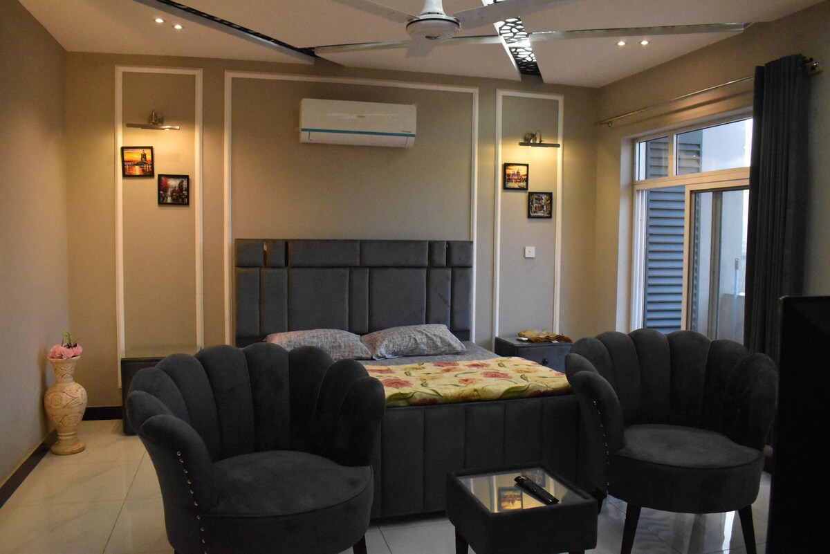 Բարի գալուստ Luxorèa հանգստի վայր՝ նրբաճաշակ ձևով հարդարված ստուդիայի տեսքով բնակարան, որը առաջարկում է ժամանակակից, հարմարավետ և շքեղ հանգիստ ԻՍԼԱՄԱԲԱԴԻ ՄԻՋԱԶԳԱՅԻՆ ՕԴԱՐԱՆՈՑԻՑ ընդամենը 5 րոպե հեռավորության վրա Բնակարանի գտնվելու վայրը այն իդեալական է դարձնում ճանապարհորդների համար, այն առաջարկում է անզուգական հարմարավետություն՝ անկախ այն բանից, թե դուք կանգառ եք կատարում թռիչքից առաջ, թե վաղ եք մեկնում։ Վայելեք հանգիստ հանգիստ, որտեղ ոճը, հարմարավետությունը և հասանելիությունը միասին են Իսլամաբադի միջազգային օդանավակայանից ընդամենը 5 րոպե մեքենայով։ Ուղղակի հասանելիություն դեպի M1-M2- հիմնական քաղաք