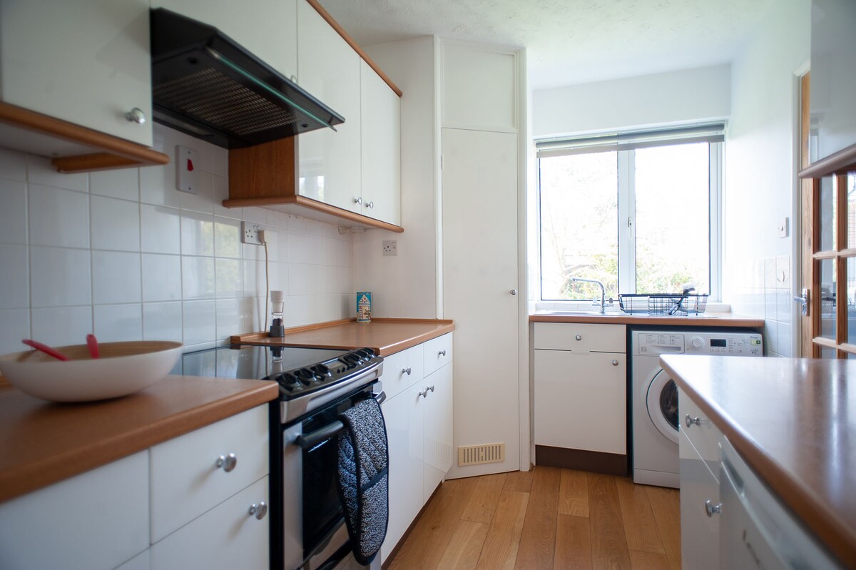 Cherry Tree House is a private apartment within our house with own entrance. We live in the other half of the house with no access to your apartment. King size Hypnos bed, fully fitted kitchen, range cooker, microwave, washing machine, fridge/freezer and dishwasher. Own bathroom with a huge walk in shower. A 40" TV with Now TV and Netflix, so you can relax and catch up with a box set. Tea/coffee facilities are provided. You also have shared access to our peaceful garden. No children or pets.
