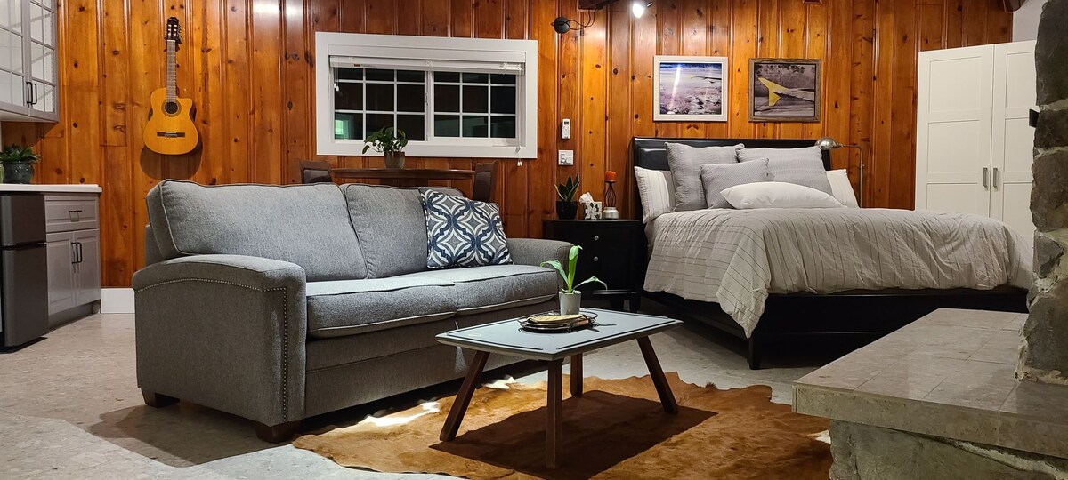 Ընդարձակ 1 Bdrm հարկաբաժին ՝ երկտեղանի մահճակալ, բուխարի, կայանատեղի