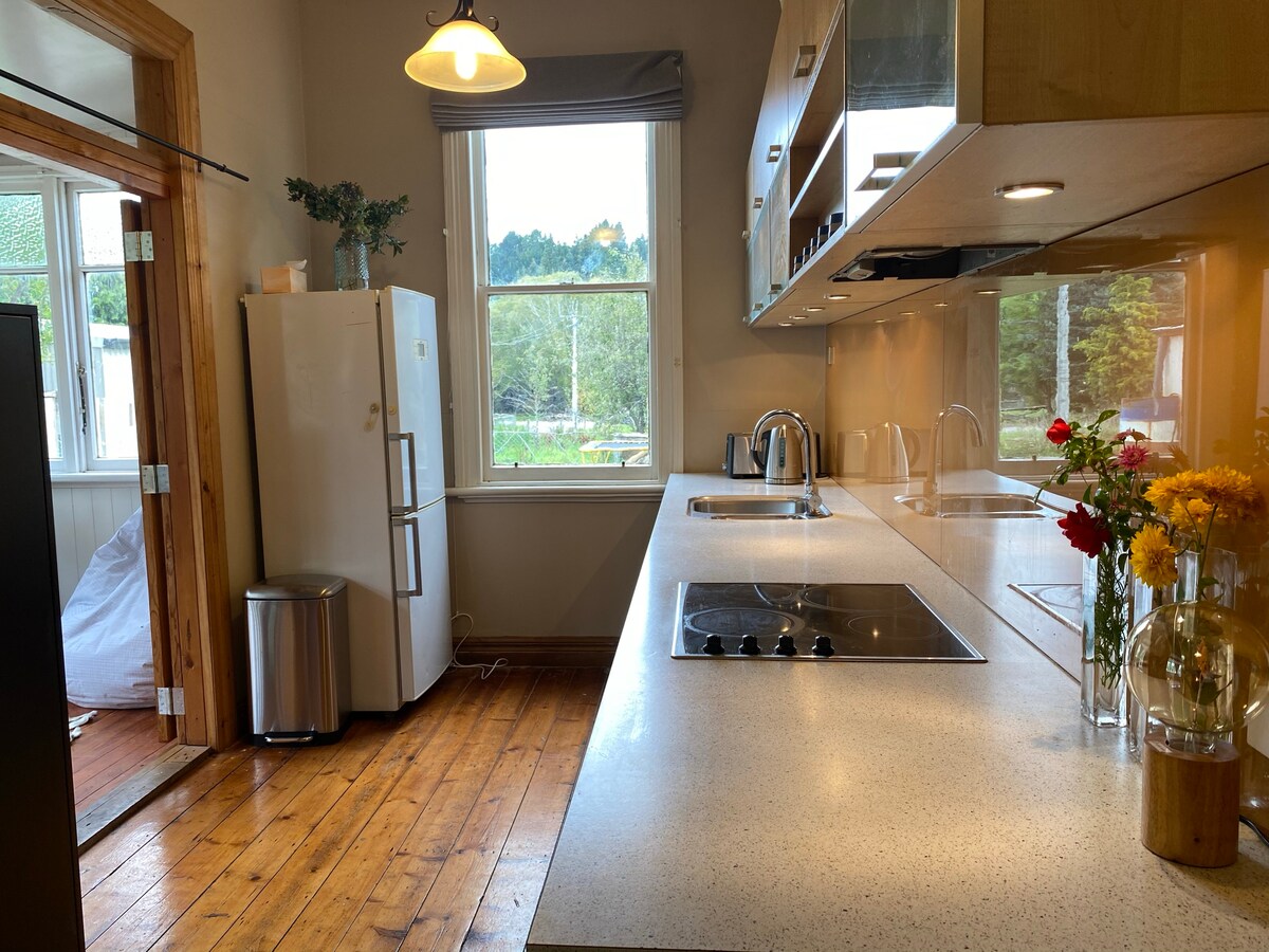 Yes, this is really The Old Naseby School House. This 2 bedroom house sleeps up to 7 people. A king room with ensuite, a second bedroom with 3 single beds, and the option of a double sofa bed in the lounge area. All beds have electric blankets. Full kitchen. Second bathroom with washing machine. The living area is heated by a log burner & heat pump. Outside is a verandah to BBQ & relax & enjoy the outdoor area.
