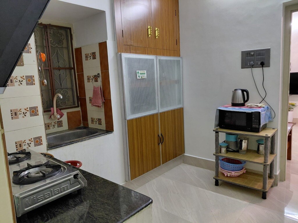 Relax with your whole family at this wonderful peaceful place. This lovely luxurious 2 BHK is located at the heart of Vellore easily accessible to CMC main campus, CMC eye hospital Naruvi, Golden temple. This flat has two bedrooms with attached bath, living room, kitchen, balcony, terrace. very near to officers lane, SH 4, supermarkets, hotels, public transport etc. well equipped with all modern facilities like AC, Wifi, CCTV, lift, geyser, fridge,water purifier, Gas stove, cooking utensils etc