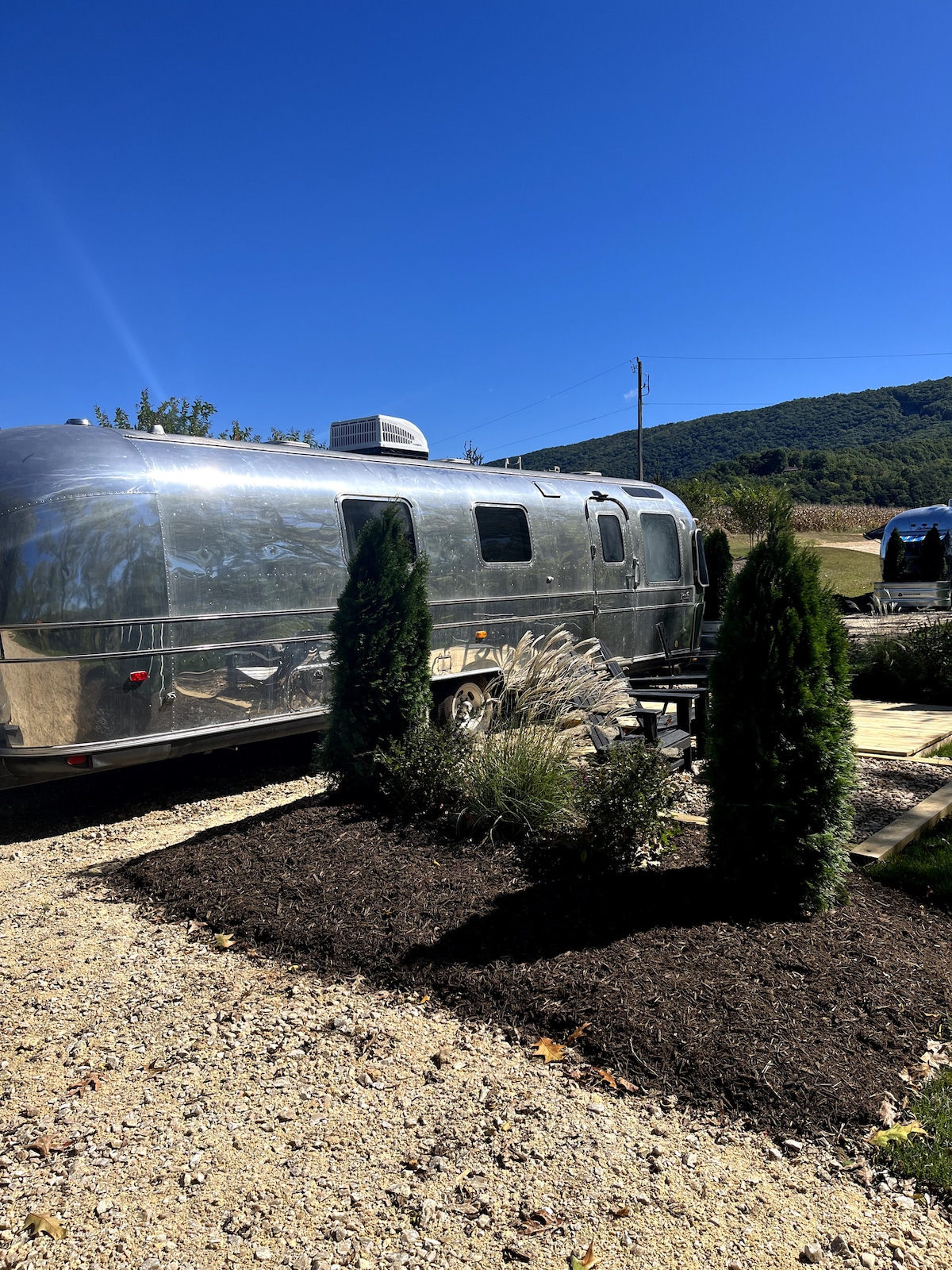 Յուրահատուկ գլեմփինգային փորձառություն երկրի ամենանշանավոր քեմփինգներից մեկում ՝ Airstream - ում ։ Կարգավորումը տպավորիչ է: Աշխատանքային ագարակում, որտեղից բացվում է Շենանդոա գետը, որտեղից հիանալի տեսարան է բացվում դեպի Մասանուտեն լեռը ։ Դիտեք արևածագը ձեր սուրճով ձեր պատիոից և երեկոներն անցկացրեք ՝ դիտելով աստղերը ձեր կրակից: Քայլեք դեպի այն, ինչ մենք անվանում ենք Միստի Ռիվեր զբոսայգի, որտեղ կգտնեք ընդհանուր նստատեղ ՝ մի քանի խոզապուխտով և եզակի լողացող նավամատույցով ։