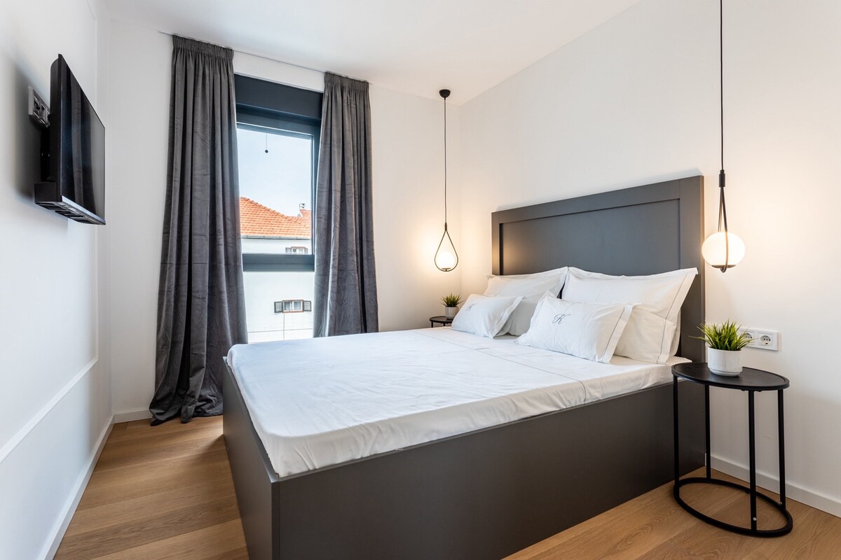 The Penthouse you've always dreamed of is waiting for you in Zadar! This newly made penthouse with a rooftop terrace with a hot tub, lounge area, and sauna is designed for those who want a royal experience for their holidays. This penthouse has two bedrooms, two bathrooms, a living room, and a kitchen as well as a roof terrace and a private parking spot. It is located 10 minutes walk from the old center of Zadar. Let me take you through the interior of our penthouse.