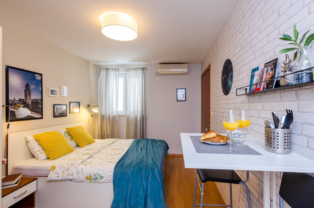 Ձեր պատշգամբից վայելեք Դուբրովնիկի հին քաղաքի և Միջերկրական ծովի հիասքանչ տեսարանները ։ Ճաշակով կահավորված, հարմարավետ, ընդարձակ և լուսավոր բնակարան հանգիստ, հմայիչ սարալանջ թաղամասում, որտեղ կան առատ հարմարություններ և առջևի կայանատեղի ։ Բնակարանն ունի նոր վերանորոգված սանհանգույց և խոհանոց, ունի Wi - Fi, A/C և ջեռուցում, կաբելային հեռուստատեսություն, Bluetooth բարձրախոս, լվացքի մեքենա և չորանոց, հարմարավետ ներքնակներ և բարձեր, բամբակյա անկողնային պարագաներ, հիգիենայի շքեղ պարագաներ և այլն:
