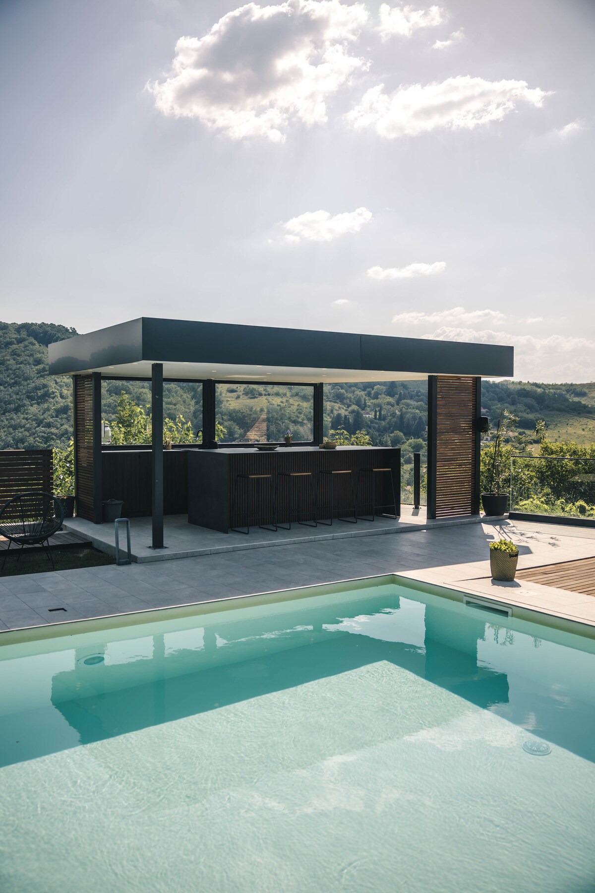Նովի Սադի, Վոյվոդինայի և Դանուբ գետի գեղեցիկ տեսարանով տուն ։ Նովի Սադի կենտրոնից ընդամենը 10 րոպե հեռավորության վրա ։ Այն ունի հյուրասենյակ, ճաշասենյակ, խոհանոց, լոգասենյակ և 3 ննջասենյակ ։ Բաց - փակ տեռաս ՝ քաղաքից բացվող տեսարանով, որտեղից բացվում է մայրամուտի ամենագեղեցիկ տեսարանը և ունի 35 նստատեղ ՝ լիովին կահավորված խոհանոցով, գրիլով, ձայնային համակարգով և զուգարանակոնքով ։ Բակում կա մանկական խաղահրապարակ ՝ սահուղիներով, լողավազանով և կրակակետով, որտեղ կարող եք նստել կրակի մոտ գտնվող ճոճանակներին ։