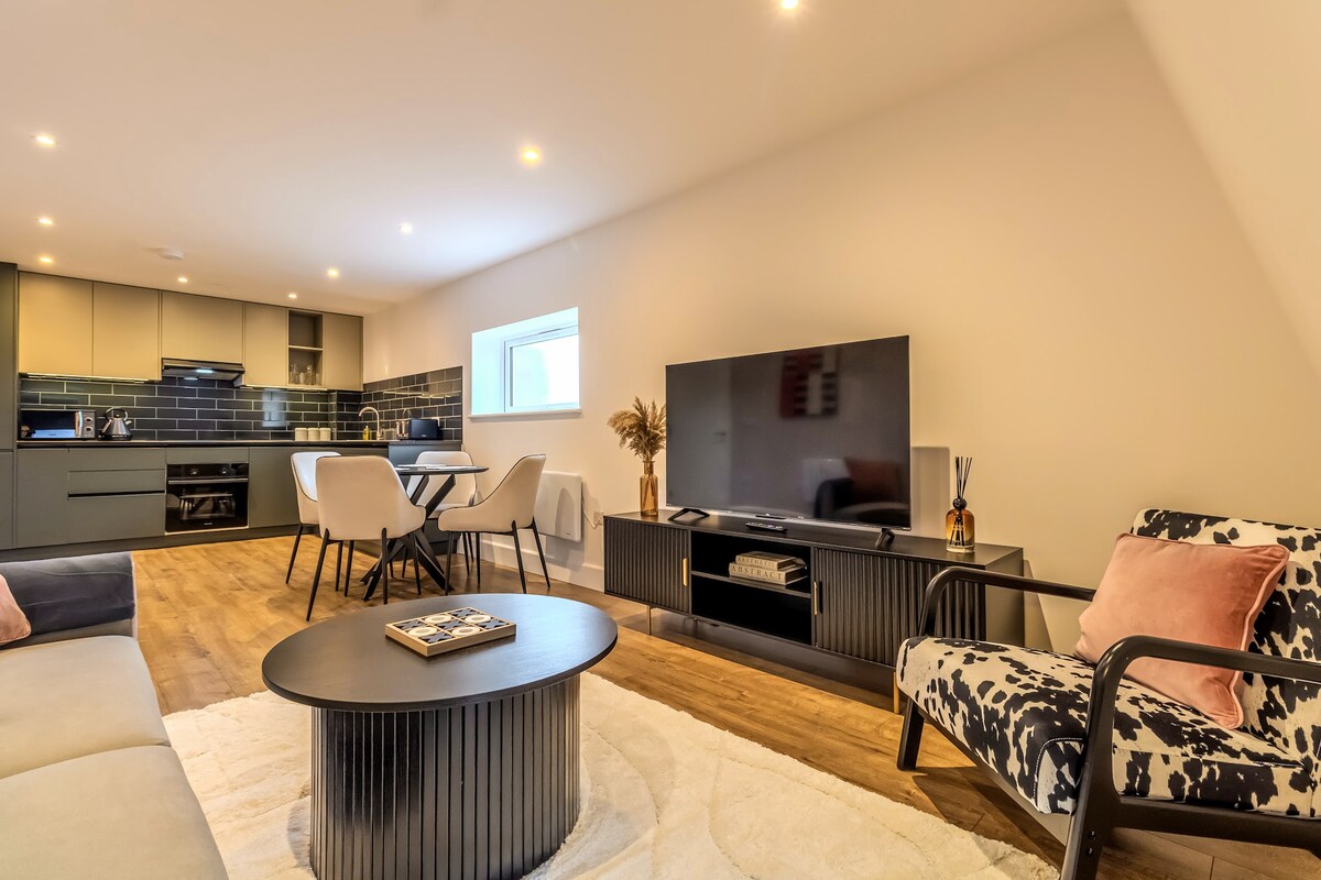 Brand new, stylish 1-bed flat in the heart of Reading, just a short walk to The Oracle Shopping Centre, shops, restaurants and transport links. Perfect for business or leisure stays. Features a flexible zip-and-link king bed (or twins) plus a comfy sofa bed, fast WiFi, fully equipped kitchen and modern bathroom. Fresh, bright and fully furnished for short or long stays with all bills included. Ideal for couples, families or contractors.
