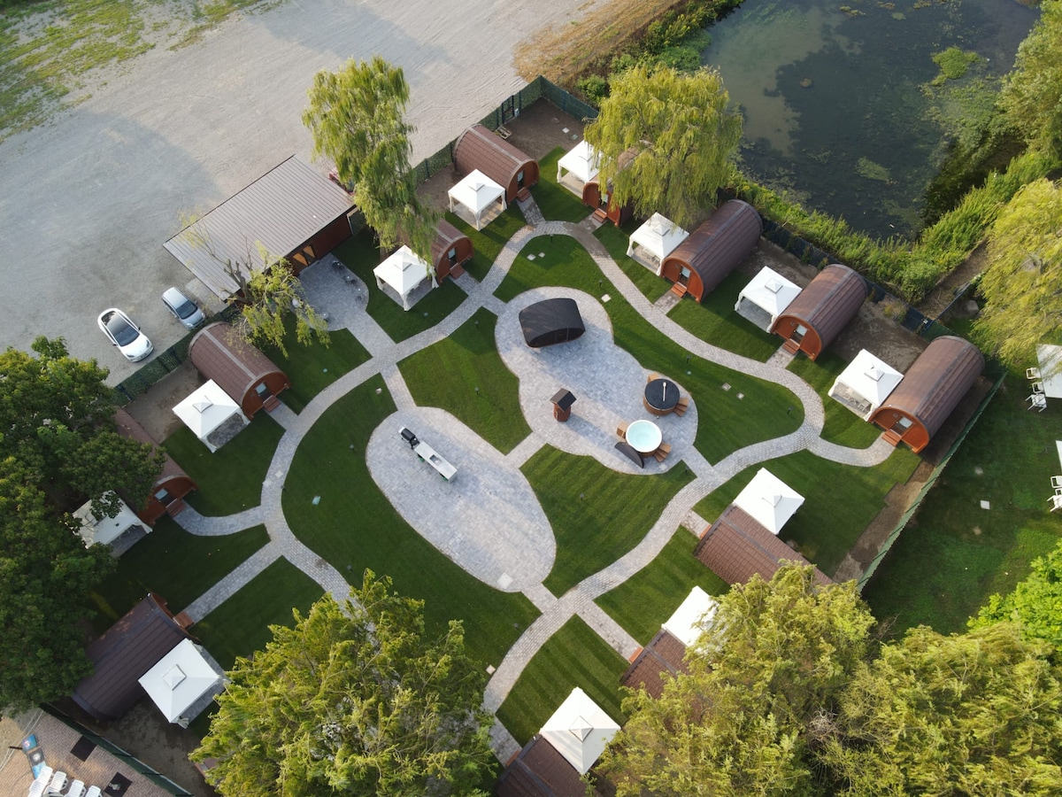 Փայտե նրբաճաշակ տնակների համալիր, որոնք գտնվում են հաճելի կանաչ միջավայրում և ընկղմված են Նովարեյան հարթավայրերի հանգստության մեջ ։ Ամեն հարմարավետությամբ հագեցած տնակներում կա բացառիկ պատիո ՝ հագեցած սեղաններով և տախտակամածի աթոռներով, որտեղից բացվում է մեծ այգի, որտեղ հյուրերին հասանելի կլինեն նրբաճաշակ սաունա և ջակուզիներ ։ Փորձառության մեջ ներառված է առատ մայրցամաքային և միջազգային նախաճաշ ։