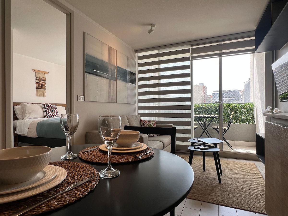 1 ննջասենյակով բնակարան ՝ լիովին կահավորված այն ամենով, ինչ անհրաժեշտ է հիանալի այցի համար, կտուր 19 - րդ հարկում, որտեղից բացվում է գեղեցիկ տեսարան դեպի Անդեր լեռը և քաղաքը: Գտնվելու վայրն իդեալական է Սանտյագոն ոտքով, երկու հիմնական զբոսաշրջային տեսարժան վայրերի և մետրոյի կայարանի (Bellas Artes) մոտ, Parque Florestal, Cerros San Cristóbal և Santa Lucia, Plaza de Armas, Patio Bellavista և Lastarria, ռեստորաններ և սրճարաններ: Բնակարանն իդեալական է զույգերի, արկածախնդիրների և բիզնես ուղևորների համար ։