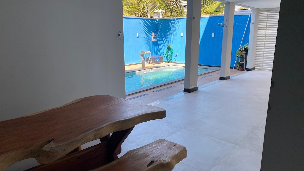 Գտնվում է Պոնտա դե Մուտա լողափից 50 մետր հեռավորության վրա ՝ Կարմիր թագի մուտքի մոտ, որը գտնվում է Մակուկո վրանի դիմաց ։ Մանրակրկիտ կահավորված և կահավորված տուն, այդ թվում ՝ առանձին մանղալ: Փակ կոնդոմինիում ՝ ավտոտնակով, շոգեբաղնիքով, ընդհանուր մանղալով և գեղեցիկ լողավազանով ։ Ամեն ինչ հարմարավետ է ձեզ համար ։ Կա 2 ընդարձակ մահճակալ, երկտեղանի երկտեղանի մահճակալ և երկու մեկտեղանոց մահճակալ ՝ օժանդակ մահճակալ երկրորդ ննջասենյակում, բացի այդ, հյուրասենյակում կա բազմոց - մահճակալ, այսինքն ՝ հիանալի տեղավորում է 8 մարդ ։