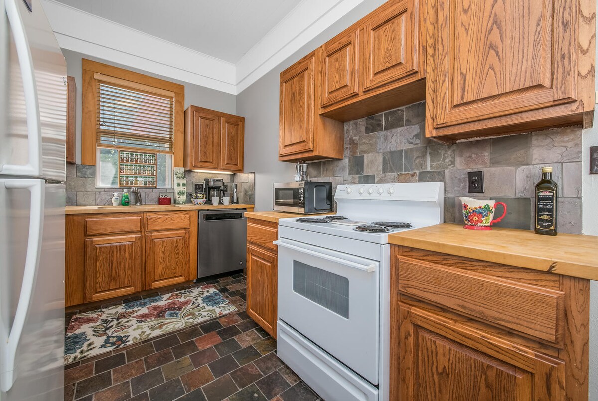 Մեր ռոմանտիկ Այգեգործի քոթեջը հմայիչ է, հարմարավետ և հարմարավետ: Դա մեր ամենափոքր քոթեջն է, բայց այն գնագոյացված է և նախագծված է հանգստի համար անհրաժեշտ ամեն ինչով՝ մասնավոր պատշգամբ՝ պարտեզի տեսարանով, շքեղ 150–179 սմ մահճակալ, երկտեղանի ջակուզի (ձեռքի ցնցուղ), լավ կահավորված խոհանոցիկ, պարտեզի մուտք և ինքնուրույն ժամանում/մեկնում։ Դուք կայանում եք մի քանի քայլ հեռավորության վրա, և ձեր տնային կենդանին նույնպես ողջունելի է ։ Զբոսնեք 4 հանգիստ թաղամասով դեպի South Main ՝ տեղական ռեստորանների, խանութների և ժամանցի տարբերակների համար: