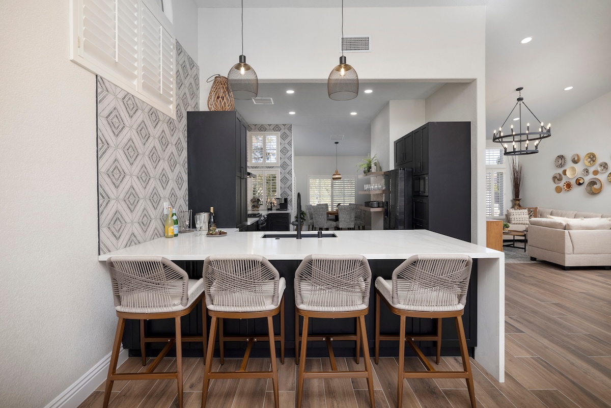✨ Բարի գալուստ ձեր ժամանակակից 2BR, 2BA ընտանեկան հանգիստ ։ Վայելեք առանձին լողավազան, հանգստացնող սպա և կինոթատրոնի հարմարավետ գիշերների համար նախատեսված մինի թատերասենյակ ։ Լիովին կահավորված խոհանոցը հեշտացնում է սնունդը, իսկ հեռուստացույցները, խաղերը և խաղալիքները զվարճացնում են բոլորին ։ Այս տունը և ՛ նորաձև է, և ՛ երեխաների համար հարմար. կատարյալ է հանգստանալու, խաղալու և միասին հիշողություններ ստեղծելու համար ։ Բացարձակապես չի թույլատրվում երեկույթներ, միջոցառումներ, նախախաղեր, քիքբեքեր կամ որևէ այլ տեսակի հավաքույթներ ։ Հպարտ եմ, որ կարճաժամկետ վարձակալության լիցենզիայի սեփականատեր եմ ։