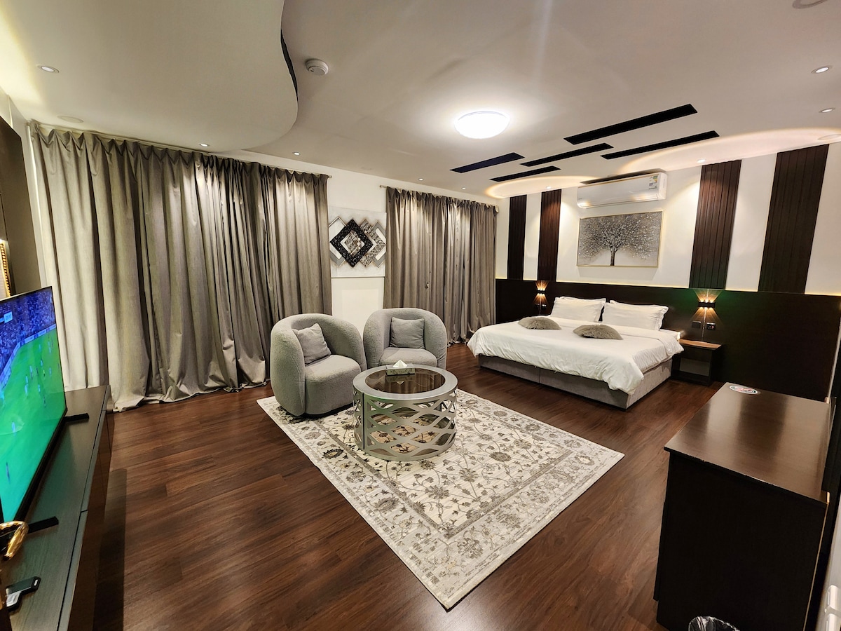 انعم بالهدوء والاسترخاء بصحبة عائلتك في هذا المسكن الهادئ والمتكامل.نهتم بأدق التفاصيل لنقدم لكم مسكن بأعلى جودة ممكنة بالفخامة والنظافة والتعقيم التي تليق بكم وضمان خدمة متميزة.