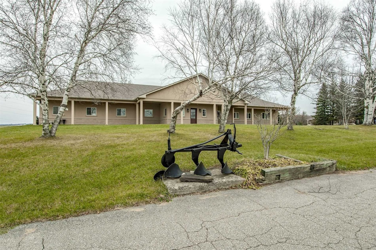Այս հարմարավետ և նրբագեղ վիլլան գտնվում է 0,5 հեկտար մակերեսով ՝ առաջին հարկի գլխավոր ննջասենյակի ընդարձակ առանձնաբաժնով, գեղեցիկ արևայրուքով, գեղեցիկ ցանկապատված հետնաբակով, կրակակետով և երկար մերձատար ճանապարհով ։ Հիանալի վայր ՝ բազմաթիվ կանաչապատ տարածքներով, աշնանային գույներով և հեքիաթային ձյան տեսարաններով ։ Ամեն ինչ մոտ է, բայց դուք գտնվում եք խաղաղ գյուղական վայրում ։ 3 րոպե HWY 400 - ից եւ 30 րոպե օդանավակայանից: Այստեղ որևէ երեկույթ և փողոցային կայանատեղի չի թույլատրվում ։ Շնորհակալություն ըմբռնումով մոտենալու համար ։