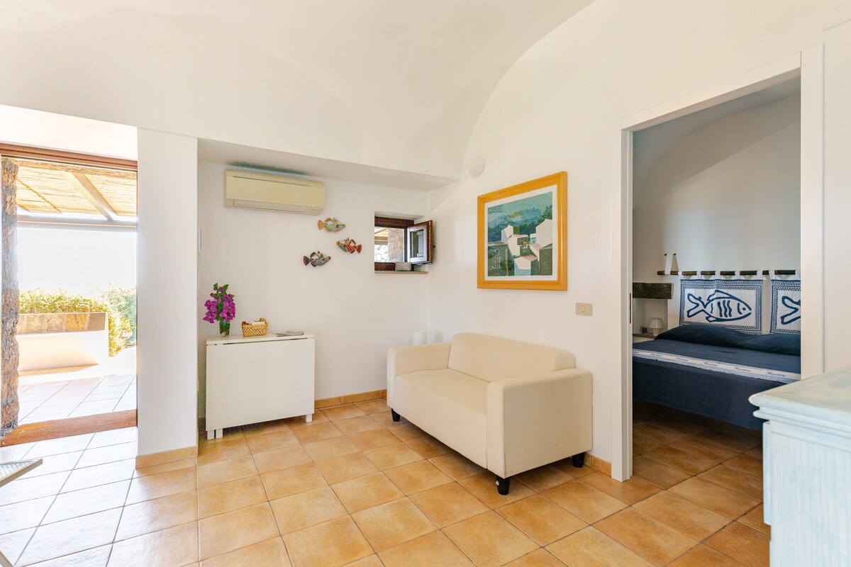 Վայելեք հանգիստ Պանտելերիայում ՝ մեր ծովի տեսարանով դամուզոյում, ունի 2 ննջասենյակ ՝ երկուսն էլ առանձին լոգասենյակներով, առանձին լողավազանով և մեծ բացօթյա պատիոյով ։ Մասնավոր հովտի գագաթին գտնվող մեր դամուզոն կատարյալ վայր է ժամանակակից կյանքի սթրեսից խուսափելու համար ։ Շրջապատված բնիկ բույսերի լանդշաֆտային այգիներով ՝ օրն անցկացրեք լողավազանի մոտ կամ աշխատեք պատիոյից ՝ ծովի 180° տեսարանով: Երեկոյան հիացեք Թունիսի մայրամուտով ՝ մեկ բաժակ տեղական գինով առանձին տախտակամածից ։