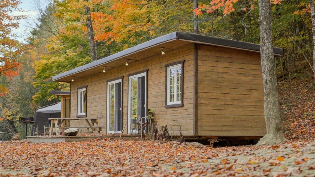 Ce mini-chalet de 2 chambres pouvant accueillir 6 personnes est chaleureusement aménagé et situé sur un site paisible en pleine forêt. Bordant la Rivière Coulonge, vous serez émerveillez par la tranquillité et la beauté qui s'étend devant vos yeux.